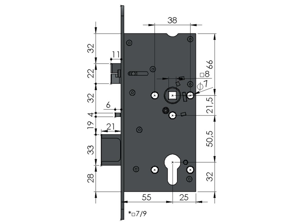 - Rozměry čela zámku: 235 x 20 x 3 mm, R10, nerez. Jiné varianty čel zámku