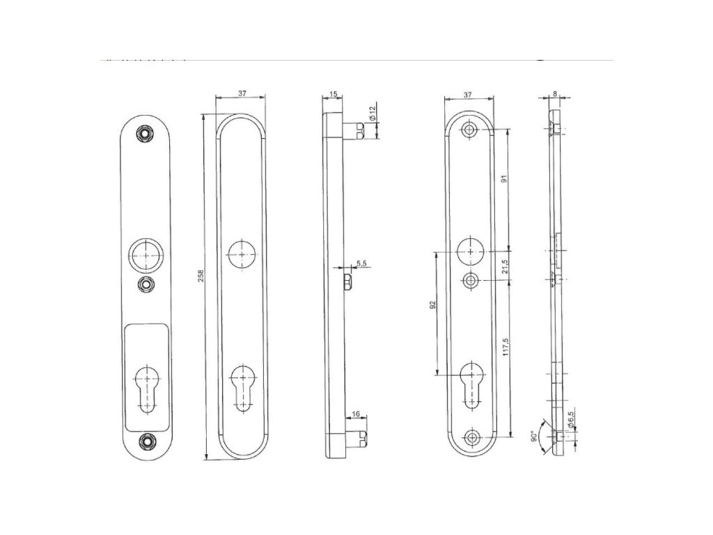 - tloušťka venkovního štítu 15 mm, rozteč fixačních šroubů 230 mm