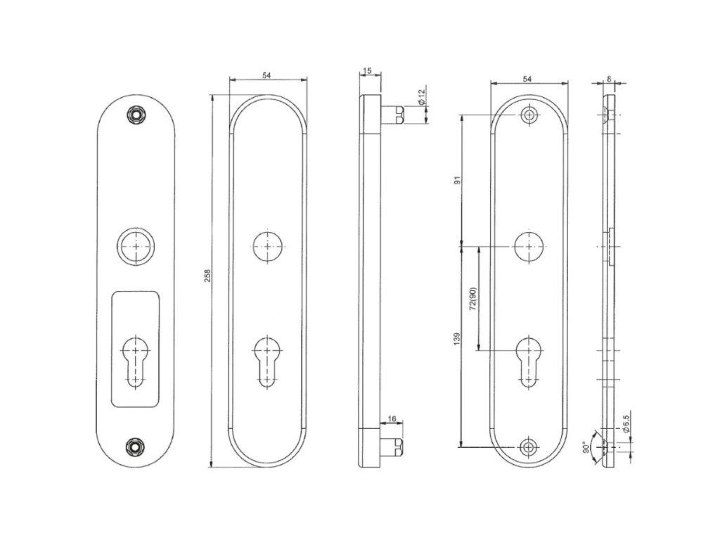 - Rozteč: 72 mm nebo 90 mm, což zajišťuje kompatibilitu s různými typy dveří a zámků.