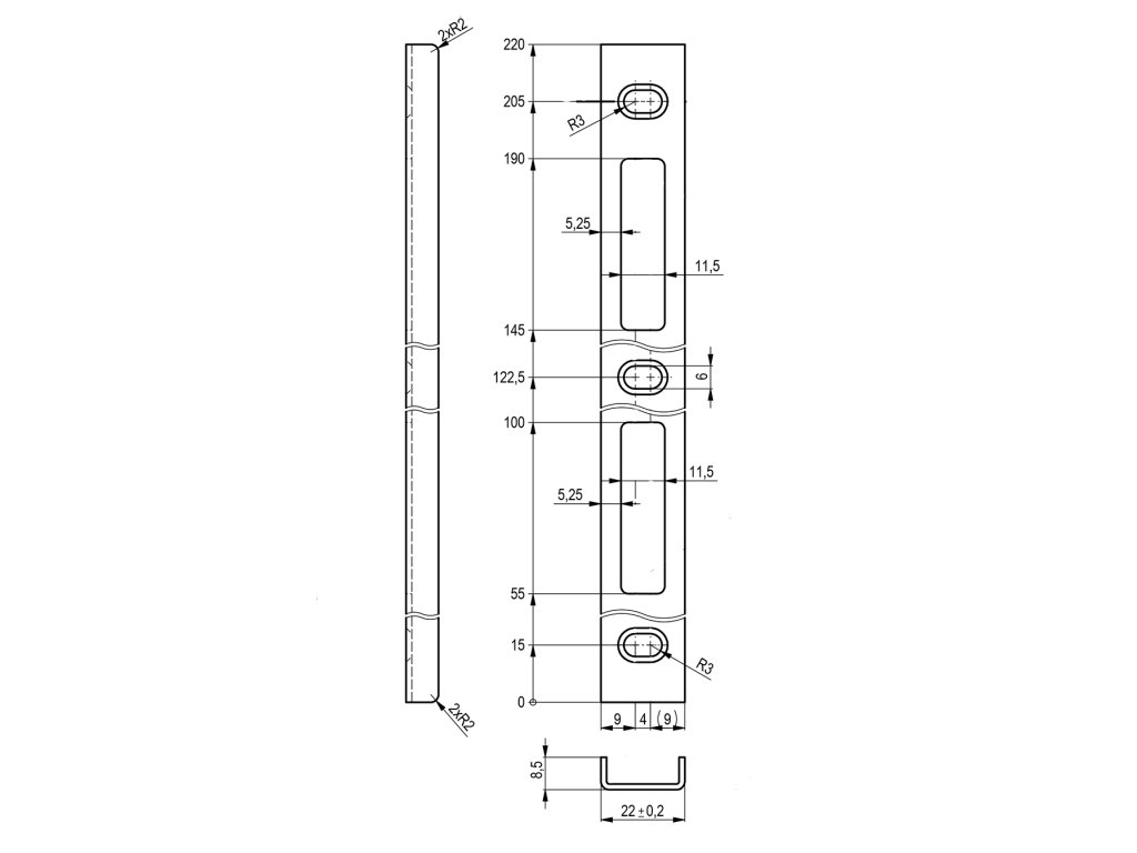 - Rozměry: 220 x 22 x 8,5 mm