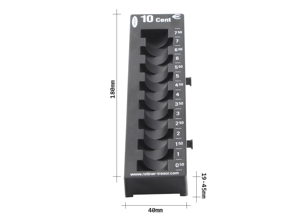 Hlavní výhody: Pro 10-centové euromince Systém skládání s dalšími přihrádkami Snadná organizace a počítání euromincí Kvalitní plast Černá přihrádka na 10-centové euromince umožňuje rychle a přehledně uskladnit 10-centové euromince. Přehledné číslování na přihrádce umožňuje rychle spočítat uloženou hodnotu. Jednoduchý systém skládání umožňuje spojit několik přihrádek do jednoho celku. Zadní část přihrádky je mírně vyvýšená pro snadnější manipulaci.Doplňkové parametry