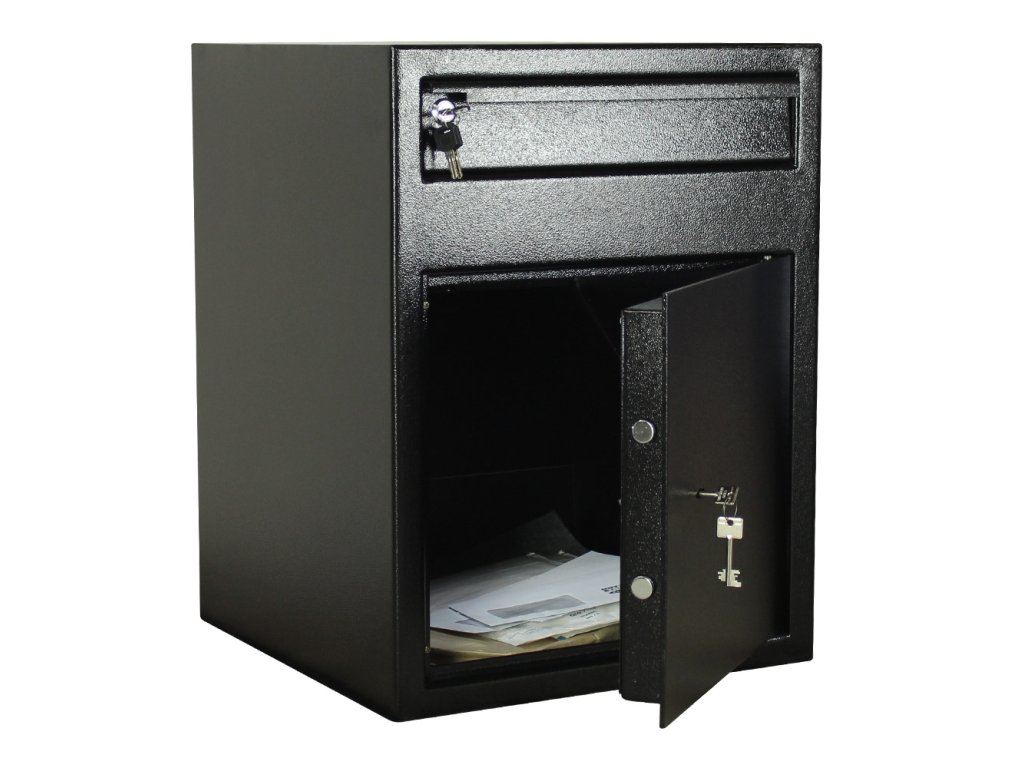 Hlavní výhody: Standardní trezorový zámek s 2 klíči Vhozová zásuvka se 4 klíči Protizávaží pro automatické zavření vhozové zásuvky Otvory na ukotvení na spodní a zadní straně sejfu Menší nábytkový sejf s vhozový mechanismem nabízí skvělé řešení pro provozy, které pracují z hotovostí nebo cennostmi, které je třeba průběžně zabezpečit. Horní vhozový otvor nabízí přístup prostřednictvím trezorového zámku dodávaného se 4 klíči. Obsluha je opravdu jednoduchá. Postačí otevřít horní Vhozové kazetu, uložit potřebnou hotovost nebo věci a následně se kazeta sama zasune díky protizávaží. Nezapomeňte ji následně uzamknout. Vložené věci automaticky propadnou do spodní části sejfu. K nim už bude mít přístup pouze ten, kdo má správný klíč. Otvory na spodní a zadní straně sejfu umožňují bezpečné ukotvení. Materiál na ukotvení je součástí dodávky.