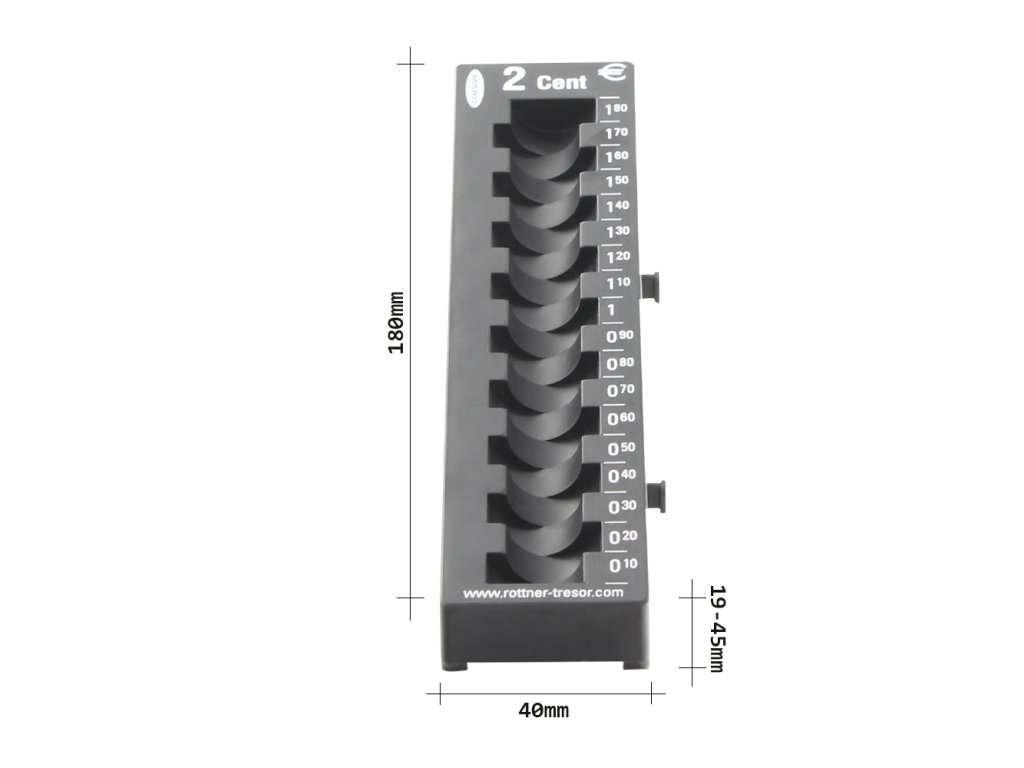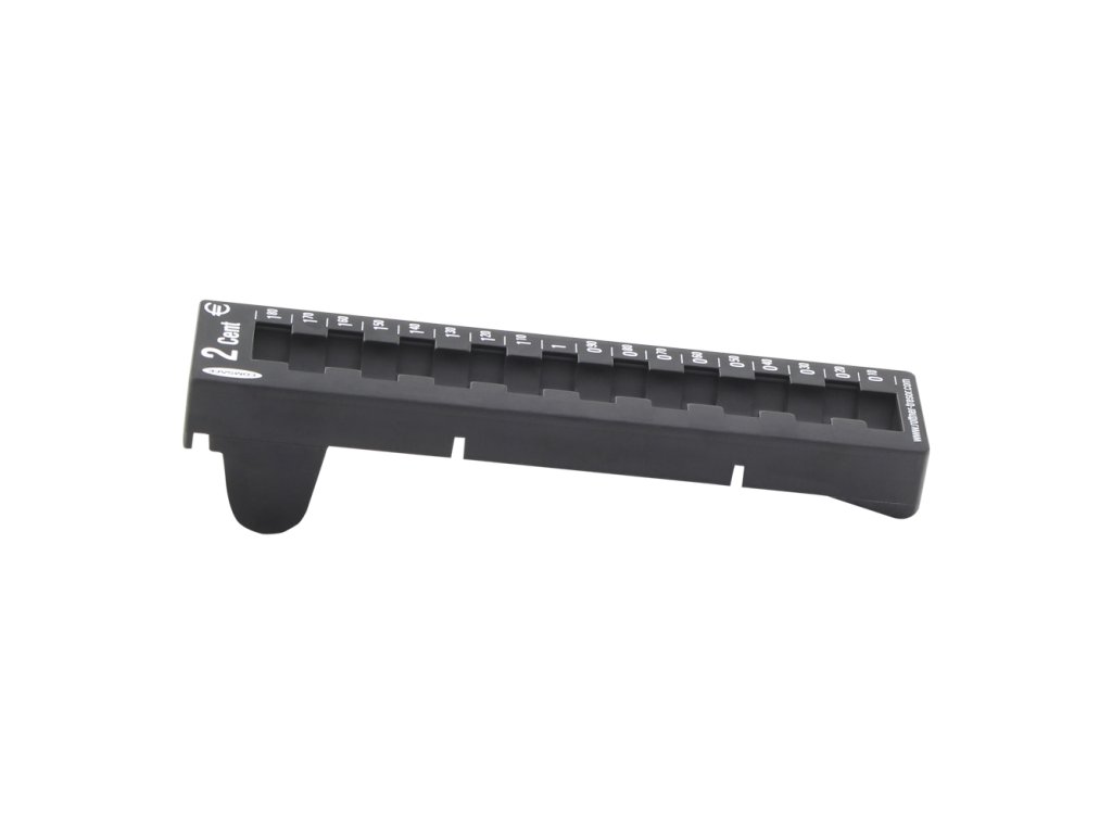 Hlavní výhody: Pro 2-centové euromince Systém skládání s dalšími přihrádkami Snadná organizace a počítání euromincí Kvalitní plast Černá přihrádka na eurové euromince disponuje praktickým úložištěm. Pro spočítání aktuálně uložené hotovosti je na boku přihrádky stupnice pro rychlejší přepočítání. V případě koupě více přihrádek je můžete skládat do větších celků. Zadní strana přihrádky je mírně vyvýšená což usnadňuje manipulaci.Doplňkové parametry
