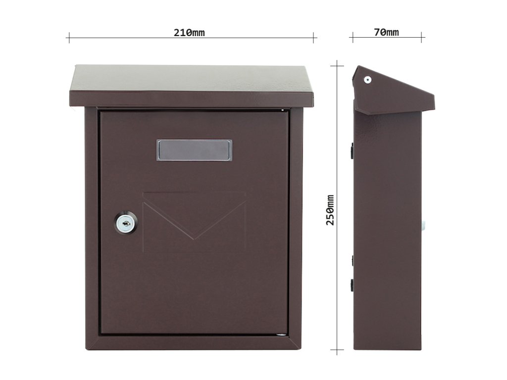 Hlavní výhody: Cylindrický zámek s 2 klíči Prvotřídní nerezavějící ocel Jmenovka Vrchní vhazovací otvor pro poštu Klasická a přitom stále velmi žádaná poštovní schránka s horním vhazovacím otvorem. Vyražené poštovní logo na hnědém pozinkovaném podkladě podtrhuje minimalistický design schránky. O vaši poštu se postará cylindrický zámek, a aby se předešlo záměně, na schránce je jmenovka. Do schránky se vejdou klasické poštovní obálky ve formátu A5. Můžete ji namontovat do interiéru i exteriéru, a to prakticky okamžitě díky přiloženému upevňovacímu materiálu.Doplňkové parametry
