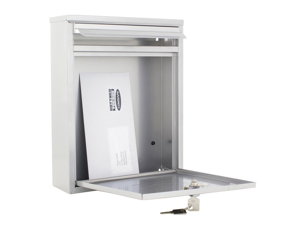 Hlavní výhody: Cylindrický zámek se 2 klíči Odolná proti povětrnostním vlivům Přední i zadní vhod pro poštu Možnost skládat do sestav Jmenovka Kvalitní ocelové provedení Stříbrná poštovní schránka z modelové řady Como si vás získá svým nadčasovým designem a širokými možnostmi využití. Disponuje předním a zadním vhozem pro poštu, a tak ji můžete umístit i přímo na dveře a poštu následně vybírat v pohodlí domova a v bezpečí. V horní části je vhod chráněn krytkou, aby dovnitř nevnikala voda a nečistoty. Schránka má místo pro jmenovku, což oceníte zejména v případě bytových domů. Možnost skládání do sestav dovoluje schránku použít i pro bytové vnitrobloku, kde je několik obyvatel. Zadní strana disponuje připravenými otvory pro upevnění schránky. Materiál k upevnění je součástí dodávky. Poštovní schránku dodáváme zabalenou v kartónové krabici.Doplňkové parametry