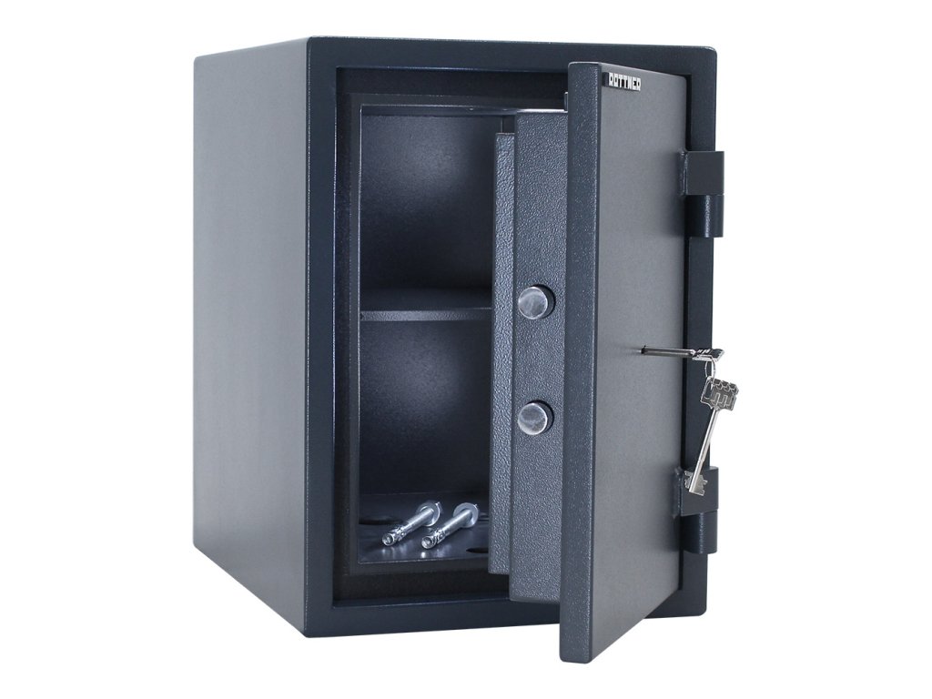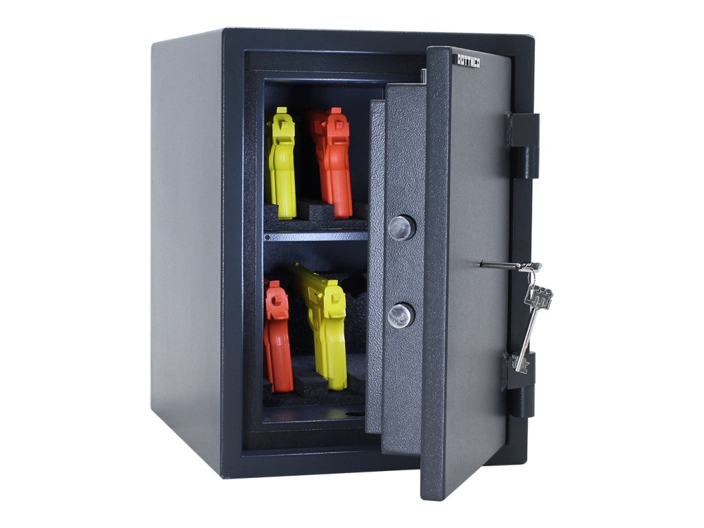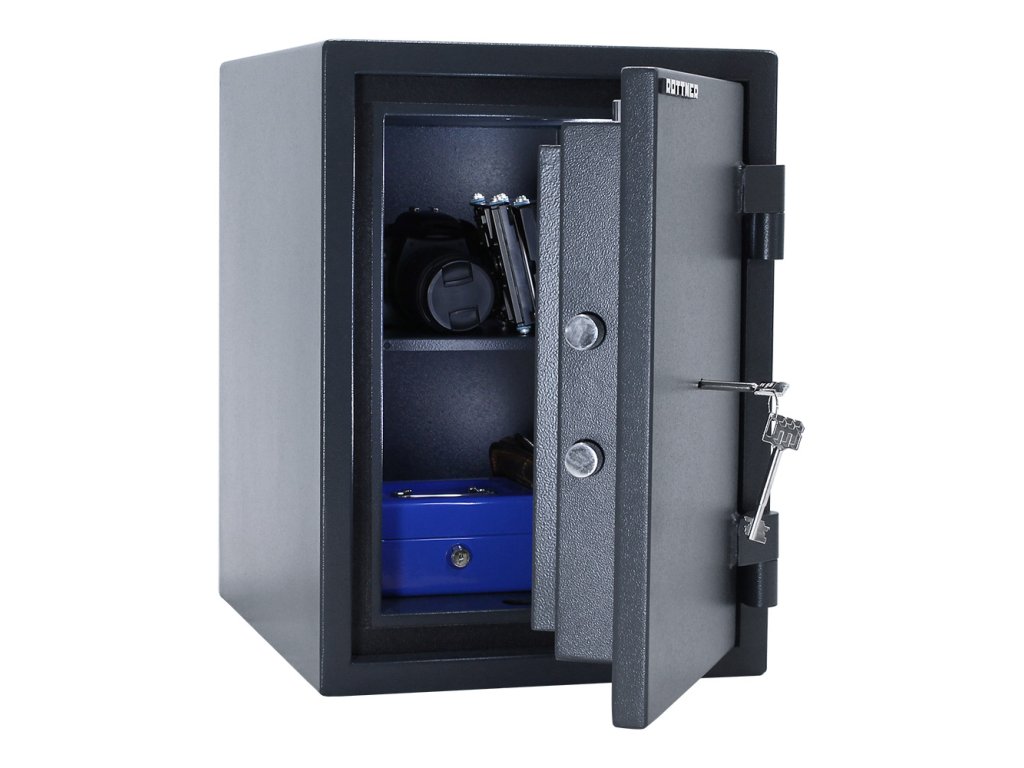 Hlavní výhody: Certifikovaný trezorový zámek Bezpečnostní třída I (ČSN EN 1143-1) Ohnivzdornost po dobu 30 minut pro papír 3-stranný uzamykací mechanizmus Korpus tloušťky 56 mm a dveře tloušťky 95 mm Nastavitelná polička uvnitř Otevření dveří až do 180° Otvory na ukotvení na spodní straně trezoru Antracitový trezor Fire Hero 50 disponuje bezpečný a certifikovaným trezorovým zámkem, který se dodává spolu s 2 klíči. Trezor má bezpečnostní třídu I (ČSN EN 1143-1) a dovnitř tak můžete uschovat i cennosti, šperky, cestovní nebo osobní doklady. Trezor Fire Hero má certifikát ohnivzdornosti a to až po dobu 30 minut pro papírové dokumenty. Pro lepší organizaci uložených věcí má trezor nastavitelnou poličku. Dveře trezoru je možné otevřít až do úhlu 180° pro lepší přístup k uloženým věcem. Na spodní straně jsou připraveny otvory pro ukotvení. Kotvící materiál je součástí balení. Kování zámku zvyšuje celkovou vnější hloubku trezoru o 15 mm.