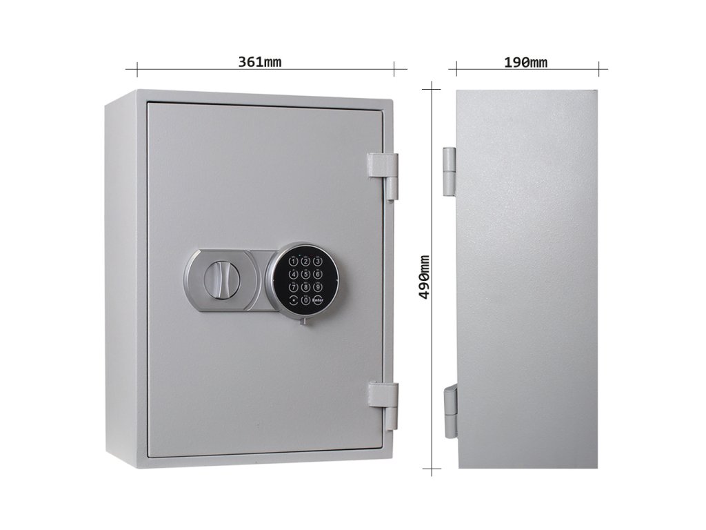 Hlavní výhody: Elektronický trezorový zámek Ohnivzdornost po dobu 30 minut 20 háčků na klíče Možnost nastavení 5 kódů, hlavní a 4 uživatelské (tzv. master a user kód) Napájení 4 x 1,5V AAA bateriemi (nejsou součástí balení) Dvouplaštový sejf Speciální betonová výplň Otevření dveří až do 180° Otvory na ukotvení na zadní straně sejfu Zabezpečte všechny své důležité klíče proti odcizení. Se sejfem na klíče Fire Key 20 žádný problém. Sejf je ohnivzdorný až po dobu 30 minut. Sejf disponuje elektronickým trezorovým zámkem, který je napájen čtveřicí klasických 1,5V AAA baterií. Pomocí snadno čitelné klávesnice je možné zadat až 5 kódů. Jeden hlavní kód a 4 uživatelské. Výborná Velba pro zařízení, kde se neustále půjčují klíče jako např. půjčovny aut. Uvnitř najdeme připravené otvory pro umístění 20 přiložených háčků na klíče. Háčky uspořádáte podle svých potřeb a představ. Spolu se sejfem jsou dodávány i barevné visačky na klíče. Na zadní straně sejfu jsou připraveny otvory pro upevnění. Kotvící materiál je součástí balení. Kování zámku zvyšuje celkovou vnější hloubku sejfu o 25 mm.