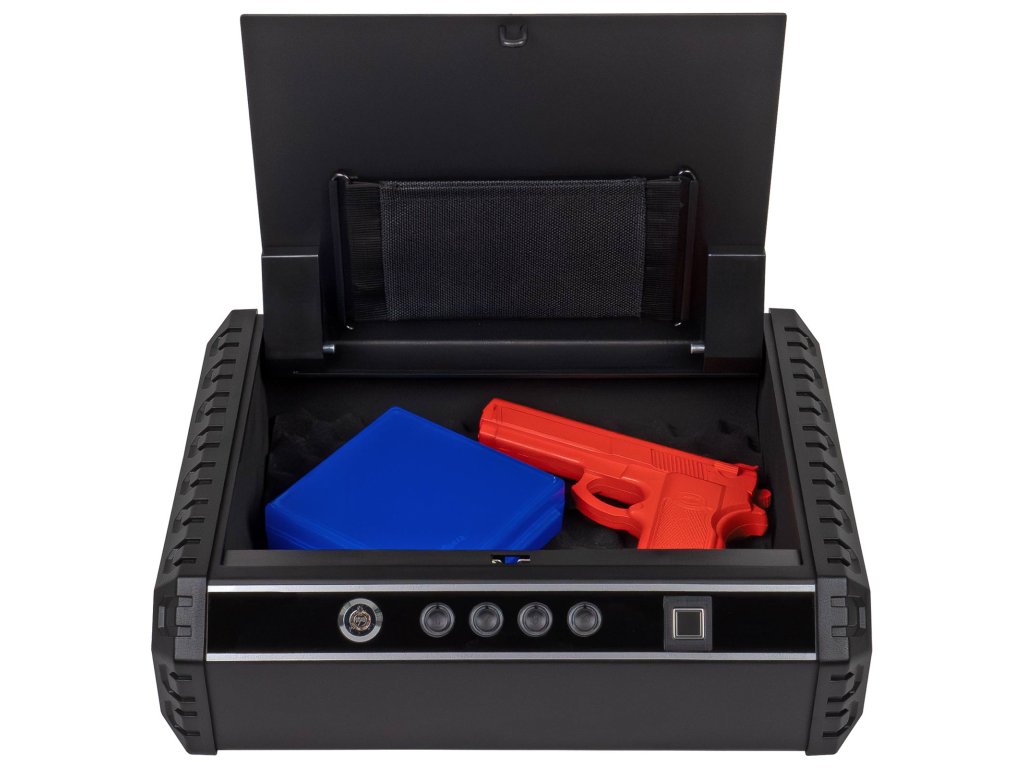 Hlavní vyhody: Kombinovaný zámek s různými možnostmi Otevření pomocí číselné kombinace Otevření pomocí otisku prstu Otevření pomocí nouzového klíče Možnost uložení až 20 otisků Napájení 4 x 1,5V AA bateriemi (nejsou součástí balení) Vhodná pro 2 krátké zbraně a drobné cennosti Měkké polstrování Kompaktní kazeta na uschování krátkých zbraní nebo menších cenností, šperků či menšího obnosu hotovosti. Jedinečností kazety je možnost zvolit si, jak uschované věci ochráníte. Můžete kazetu zamknout díky otisku prstů, číselné kombinace nebo pomocí nouzového klíče. V paměti kazety je možné uložit až 20 různých otisků prstů. Kvalitní ocelová konstrukce zvyšuje odolnost a zároveň bezpečnost kazety. Potěší vnější potažení gumou a vnitřek potaženy měkkým postrování. V případě potřeby je možné kazetu upevnit pomocí přiloženého kotvícího materiálu. Pro tuto schránku na zbraně je stanoveno, že při přechovávání krátkých zbraní do počtu 2 ks nebo do 500 ks nábojů plati prohlášení o shodě.