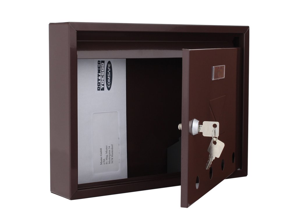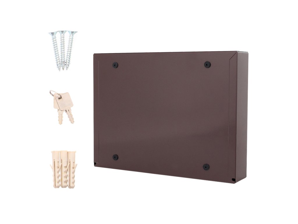 Hlavní výhody: Cylindrický zámek s 2 klíči Odolnost vůči korozi a povětrnostním vlivům Klasický design s jmenovkou Zásilky se vhazují předním vhozem a vybírají zepředu Schránku lze skládat do sestav Hnědá poštovní schránka z modelové řady Imola nabízí prostor pro klasickou poštu a poštovní zásilky. Doručené je zajištěna klasickým cylindrickým zámkem, který je dodáván spolu s 2 klíči. Ocelové provedení je odolné proti povětrnostním vlivům a korozi. Na spodní straně jsou 4 otvory přes které můžete vidět, ať už vaše pošta dorazila. Poštovní schránka má také místo na jmenovku. Obrovskou výhodou je možnost skládání do sestav, což dělá z poštovní schránky Imola skvělou alternativu i pro bytové domy. Na zadní straně jsou připravené otvory pro připevnění na stěnu. Materiál k upevnění je součástí dodávky.Doplňkové parametry