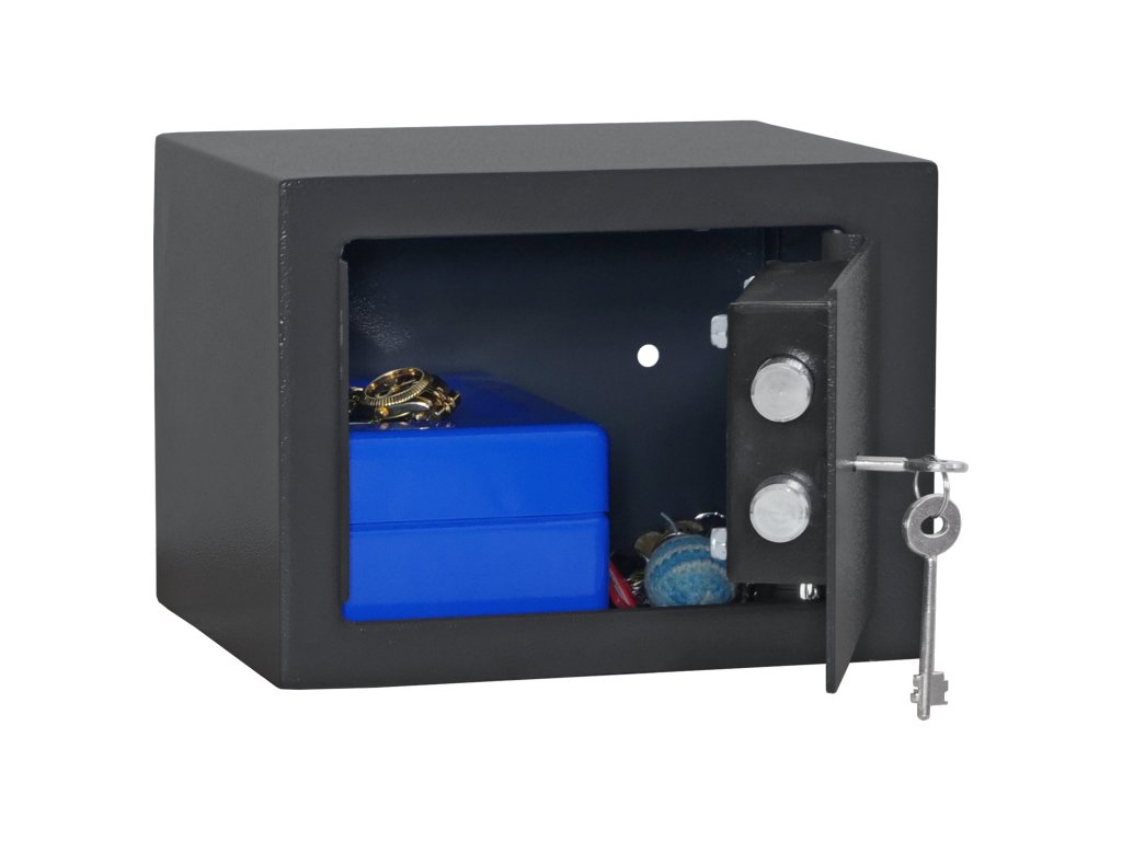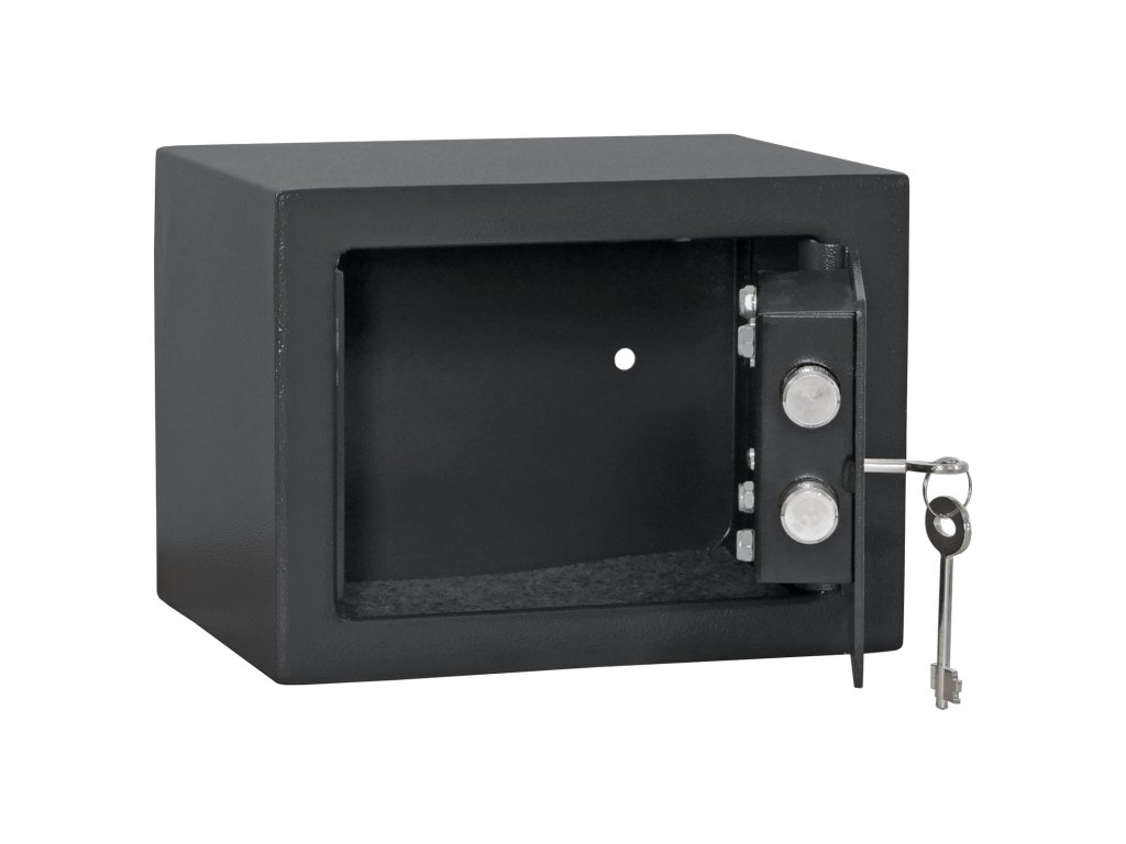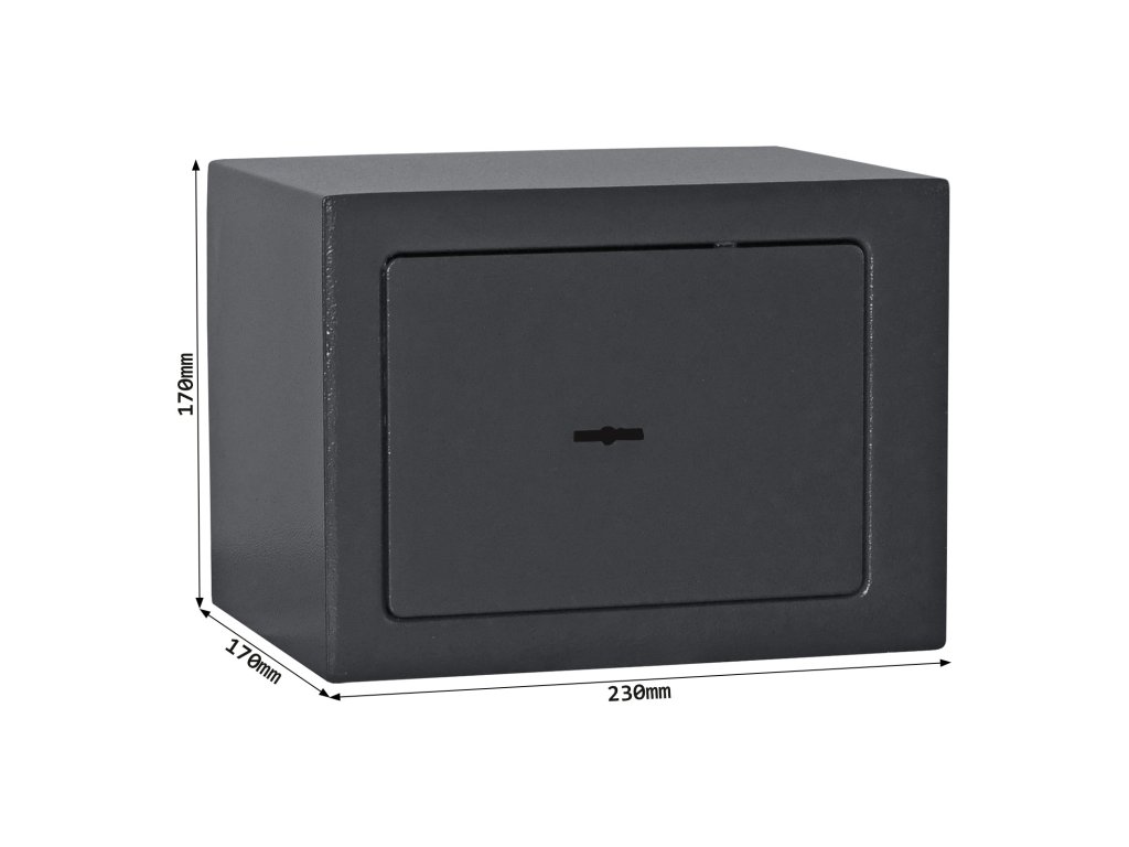 Hlavní výhody: Trezorový zámek na klíč Jednoplášťový sejf Otvory pro ukotvení na spodní i zadní straně trezoru Nábytkový sejf z modelové řady Jupiter má klasický trezorový zámek dodávaný spolu se 2 klíči. Uvnitř sejfu najdou své místo malé cennosti, doklady, hodinky nebo menší šperky. Sejf lze ukotvit prostřednictvím připravených otvorů na spodní i zadní straně. Materiál pro ukotvení je součástí balení. Pro tuto schránku na zbraně je stanoveno, že při přechovávání krátkých zbraní do počtu 2 ks nebo do 500 ks nábojů plati prohlášení o shodě.