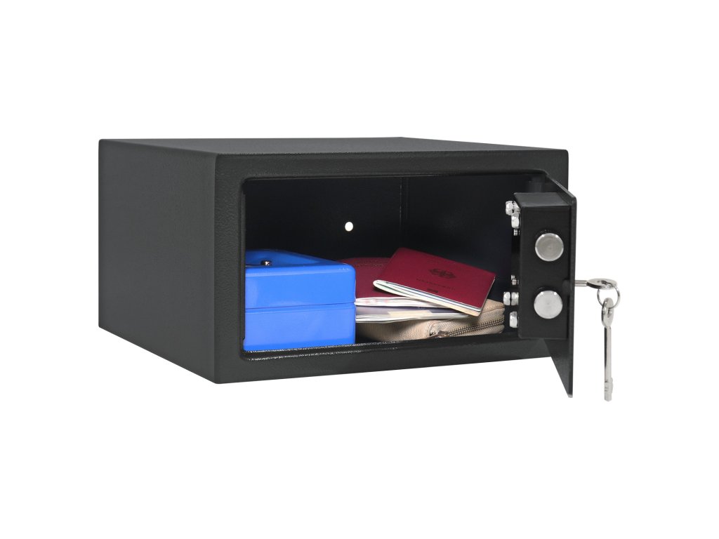 Hlavní výhody: Trezorový zámek na klíč Jednoplášťový sejf Otvory pro ukotvení na spodní i zadní straně trezoru Nábytkový sejf z modelové řady Jupiter má klasický trezorový zámek dodávaný spolu se 2 klíči. Uvnitř sejfu najdou své místo malé cennosti, doklady, hodinky nebo menší šperky. Sejf lze ukotvit prostřednictvím připravených otvorů na spodní i zadní straně. Materiál pro ukotvení je součástí balení. Pro tuto schránku na zbraně je stanoveno, že při přechovávání krátkých zbraní do počtu 2 ks nebo do 500 ks nábojů plati prohlášení o shodě.Doplňkové parametry