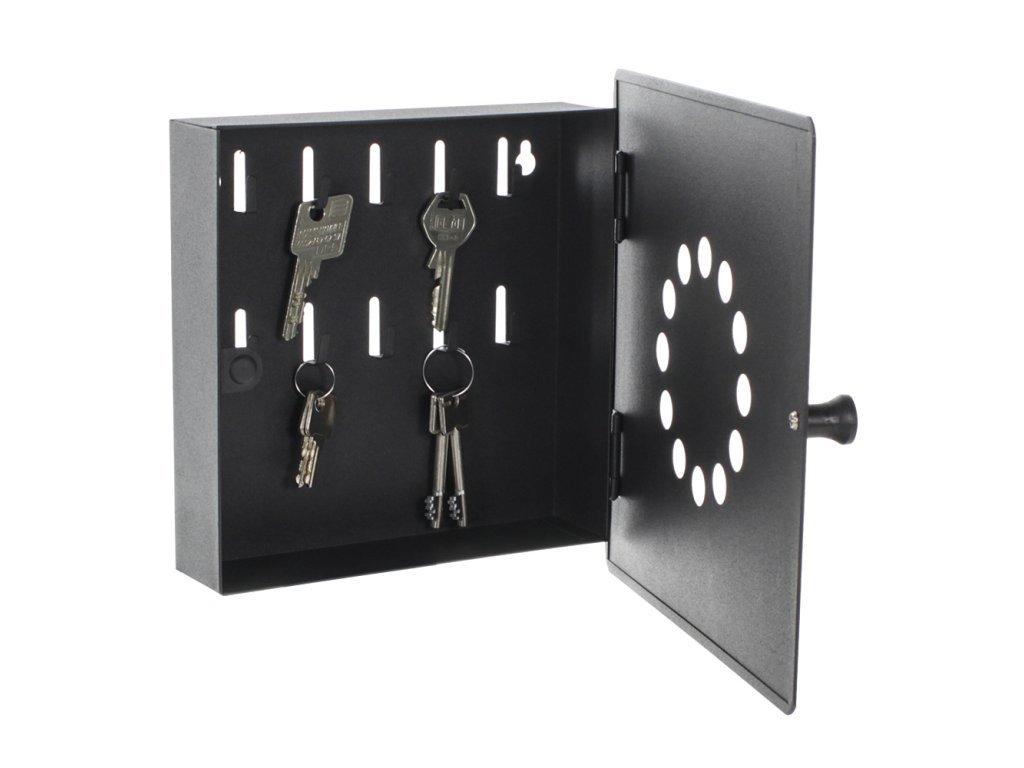 Hlavní výhody: Zavírání na magnet Pro 10 klíčů Fixně umístěny háčky Jednoduchá ale funkční černá skříňka na klíče, do které se vejde 10 klíčů. Každý z deseti háčků je fixně upevněn uvnitř a v případě potřeby je na ně možné umístit i svazky klíčů. Dvířka skříňky se zavírají na magnet, takže obsluha je opravdu intuitivní a pohodlná. V předních dvířkách jsou průhledné otvory. Na zadní straně skříňky jsou připraveny otvory pro upevnění na stěnu. Materiál k upevnění je součástí dodávky.Doplňkové parametry