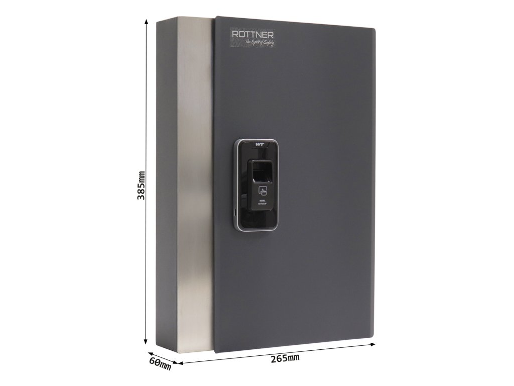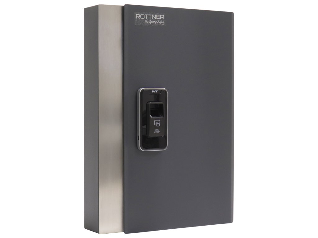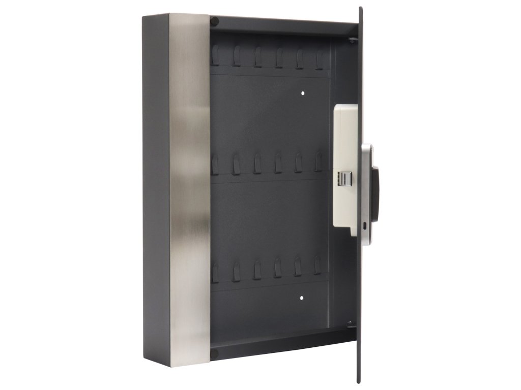 Hlavní výhody: Zámek na otisk prstu 2 hlavních a 8 uživatelských otisků Napájení 4 x 1,5V bateriemi (nejsou součástí balení) Celkově 24 háčků Jednoplášťový korpus Pevný umístěna lišta s háčkem Pozinkovaný korpus Moderní skříňka na klíče Key Pro 24 disponuje zámkem na otisk prstu. Už si nemusíte pamatovat žádný kód nebo mít u sebe klíče, postačí pouze správný otisk prstu a skříňka se odemkne. Celkově je možné uložit 2 hlavních (master) a až 8 uživatelských (user) otisků. Zámek spolu se snímačok otisku prstu jsou napájeny 4 x 1,5V bateriemi, které nejsou součástí balení. Uvnitř skříňky se nacházejí fixně umístěny lišty, na kterých je celkově 24 pozinkovaných háčků. Dveře skříňky lze otevřít do úhlu 90° a otvory na zadní straně slouží pro upevnění např. na stěnu. Materiál na upevnění je součástí balení.