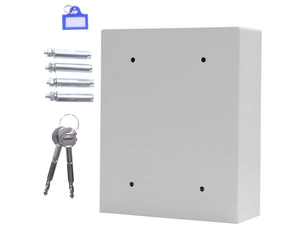 Hlavní výhody: Elektronický zámek s 2 nouzovými klíči Velká klávesnice s možností zadání až 8-místného hesla Celkově až 100 milionů kombinací Jednoplášťové provedení Napájení 4 x 1,5 V AA bateriemi (nejsou součástí) V balení 20 barevných visaček Jednoduchý sejf na klíče spolehlivě poskytne bezpečné útočiště vašim klíčem a zároveň je budete mít všechny pěkně pohromadě. Kvalitní ocel a možnost upevnění do zdi spolu s 8-místním heslem pro co největší bezpečnost. Elektronický zámek je napájen 4 x 1,5 V AA bateriemi. V případě jejich vybití poslouží některý z 2 přiložených nouzových klíčů. Háčky jsou fixně umístěny. Spolu se sejfem na klíče obdržíte i 20 plastových visaček.