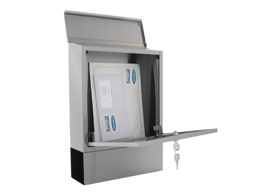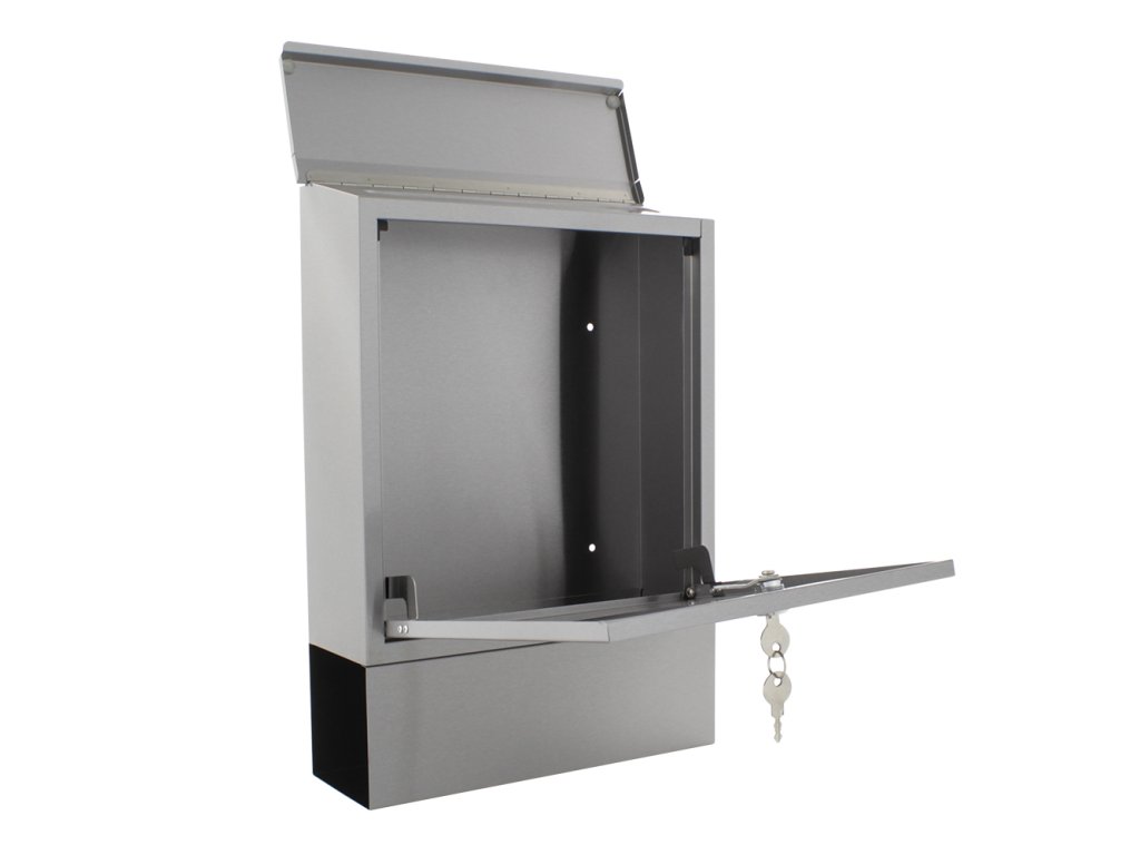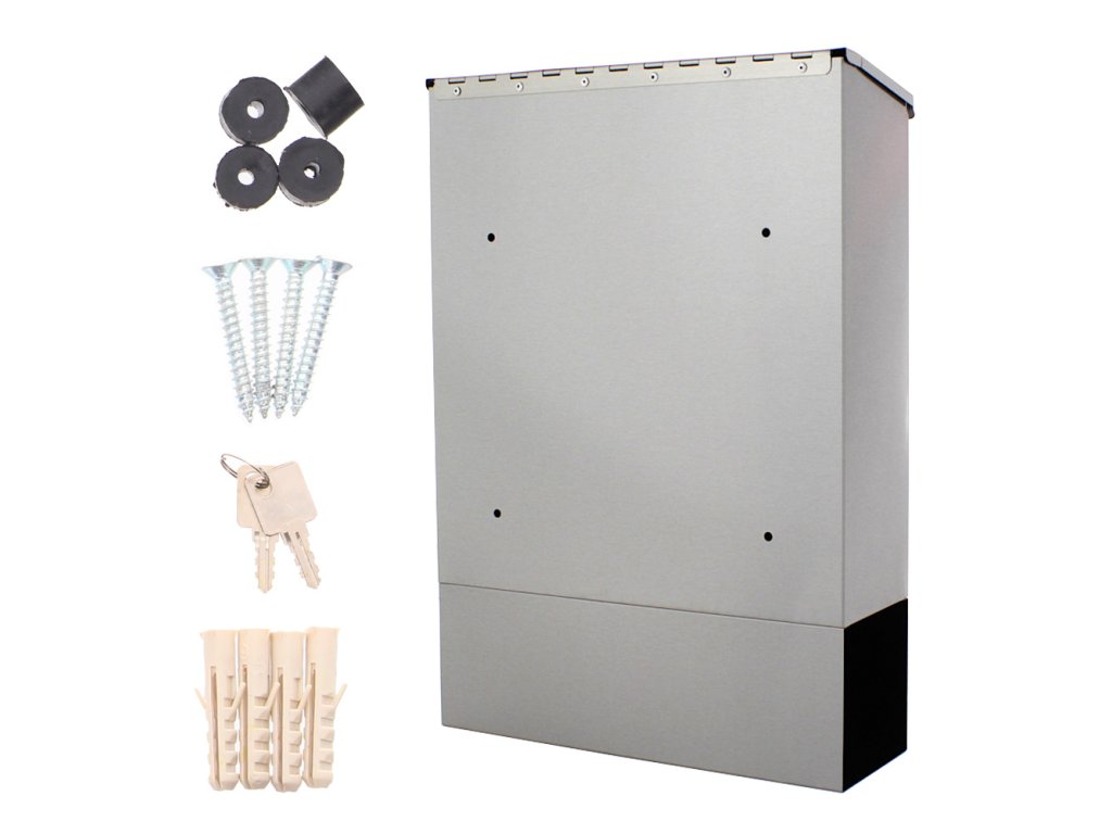 Hlavní výhody: Cylindrický zámek s 2 klíči Horní vhod pro poštu Odolnost proti povětrnostním vlivům Samostatná část na noviny Jmenovka Vyrobeno z kvalitní nerezové oceli Nerezová poštovní schránka Libro nabízí nadčasový design a řadu vylepšení. Hlavní předností poštovní schránky je samostatná část na noviny a denní tisk. Pošťák vám vaše zásilky vhodí přes horní vhod, který je zakrytý stříškou, aby dovnitř nenatekla dešťová voda nebo nečistoty. Schránka disponuje klasickým cylindrickým zámkem a prostorem na jmenovku. Na zadní straně už jsou připraveny otvory pro upevnění. Materiál k upevnění je součástí balení.Doplňkové parametry