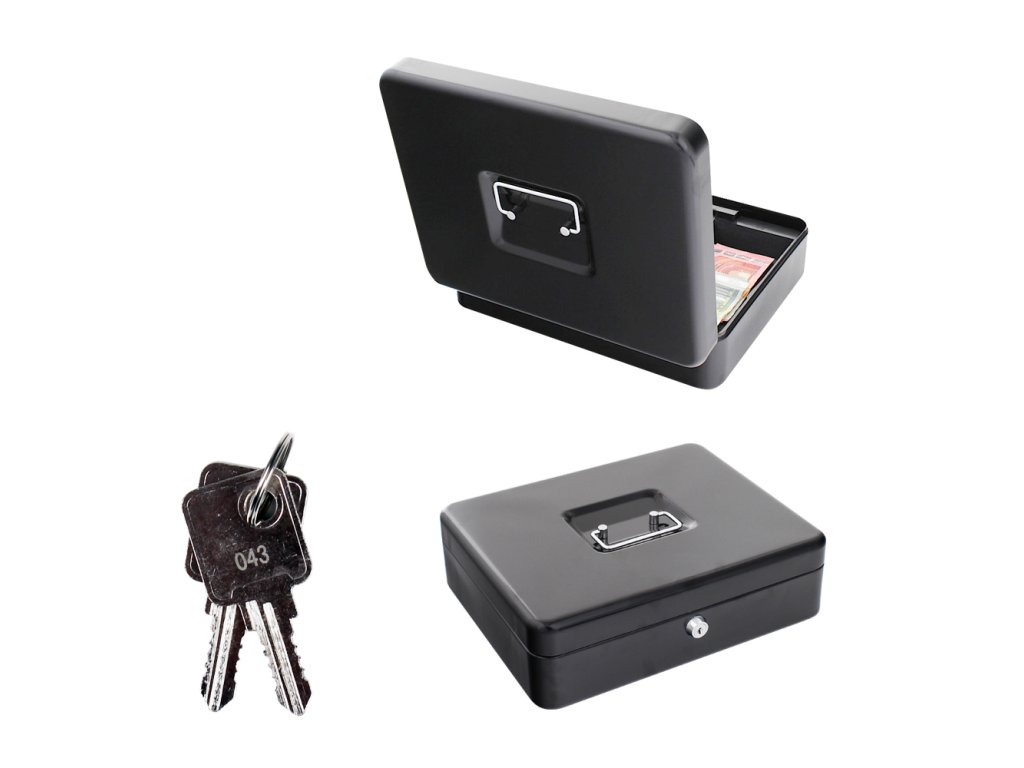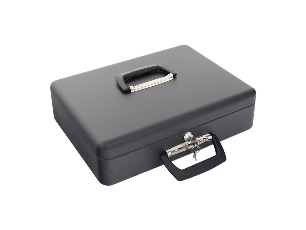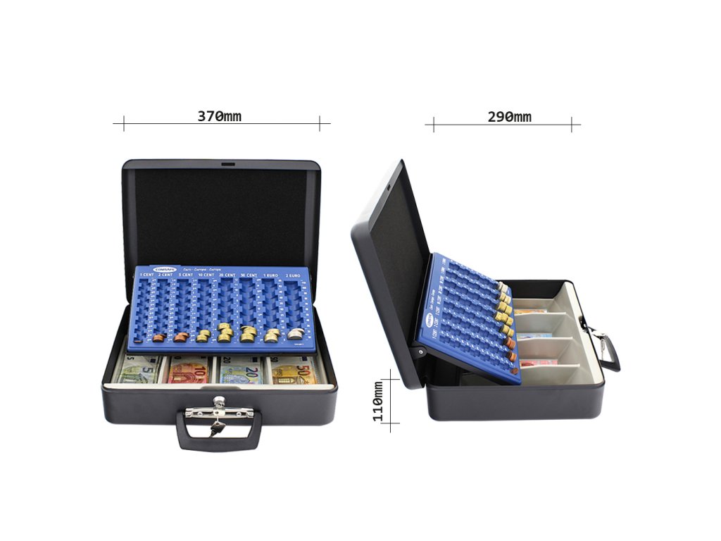 Hlavní výhody: Cylindrický zámek se 2 klíči Možnost použít jako kufřík Plastový mincovník pro euromince Plastové přihrádky pro eurobankovky Horní a boční rukojeť Kvalitní ocelové provedení Objevte přednosti europokladničky, které v sobě spojuje výhody klasické europokladničky a kompaktního kufříku. Uschovejte menší obnos peněz v pokladničce, která se po zavření může používat i jako kufřík. Po otevření europokladničky se automaticky vysune spolu s věkem i plastový mincovník. Disponuje 8 radami pro euromince, od 1 centových až po 2 eurové. Pod mincovníkem se skrývají 4 plastové přihrádky pro eurobankovky. Po zavření víka můžete europokladničku přenášet buď jako kufřík nebo klasicky jako pokladničku za pomoci horní rukojeti.Doplňkové parametry