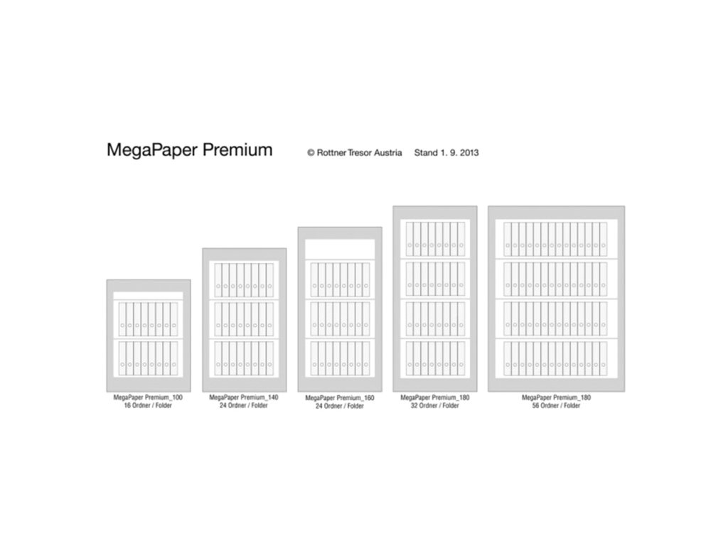 Hlavní výhody: Certifikovaný trezorový zámek Bezpečnostní třída I (ČSN EN 1143-1) Ohnivzdornost po dobu 120 minut pro papír 4-stranný uzamykací mechanizmus 2 poličky uvnitř Otevírání dveří do 180° Možnost doobjednání teleskopické registratury Možnost doobjednání teleskopické zásuvky Možnost doobjednání teleskopické police Možnost doobjednání vnitřního sejfu Otvory na ukotvení na spodní straně trezoru Bílý nábytkový trezor z modelové řady Mega Paper Premium disponuje certifikovaným trezorovým zámkem, který dodáváme spolu s 2 klíči. Provedení trezoru je víceplášťové, přičemž trezor má i certifikát bezpečnostní třídy I (ČSN EN 1143-1). Trezor Mega Paper 140 Premium je ohnivzdorný, a to až po dobu 120 minut pro papírové dokumenty. Stěny a dveře trezoru jsou vyplněny speciální směsí, aby trezor odolal vysokým teplotám. Uvnitř trezoru se nacházejí 2 poličky a dveře se uzavřou 4-stranným uzamykacím mechanismem. V případě potřeby je možné za doplatek doobjednat doplňkovou výbavu. Spodní strana trezoru má připravené otvory pro ukotvení. Materiál na ukotvení je součástí balení. Kování zámku zvyšuje celkovou vnější hloubku trezoru o 60 mm.