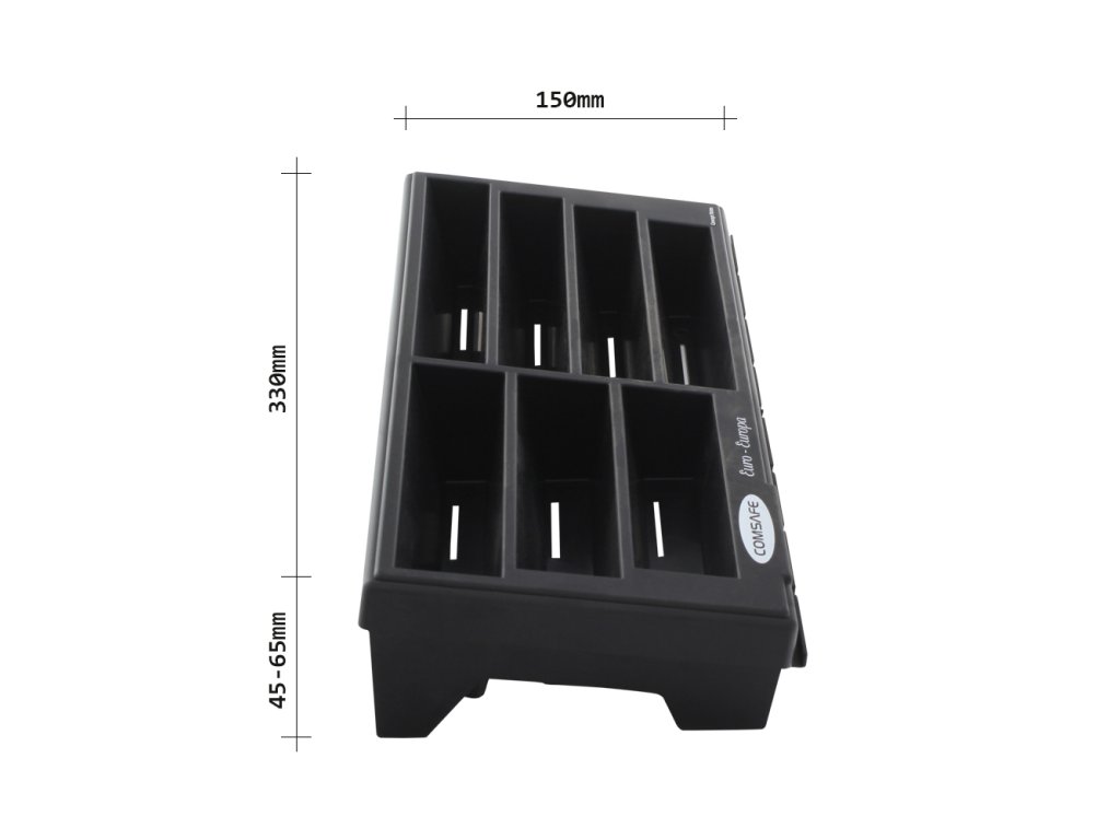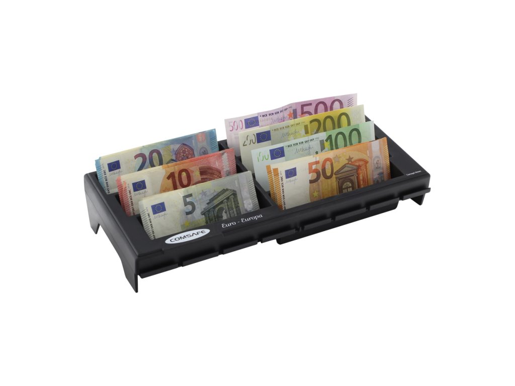 Hlavní výhody: Celkově 7 přihrádek Pro papírové bankovky Plastové provedení Černá přihrádka na bankovky je skvělým doplňkem pro místa, kde se neustále pracuje s hotovostí. Celkově přihrádka disponuje 7 přihrádkami pro papírové bankovky. Ty jednoduše uložíte do přihrádky, čímž je jednoduše rzdelíte a zároveň je můžete rychleji přepočítat. Do přihrádek lze uložit eurobankovky s nominálními hodnotami 5 €, 10 €, 20 €, 50 €, 100 €, 200 € a 500 €. Prehradka je vyrobena z kvalitního plastu a odolá i častějšímu používání.Doplňkové parametry