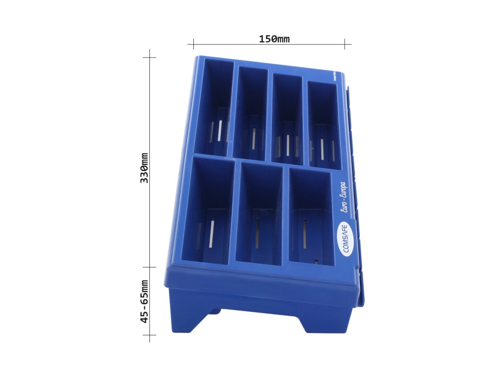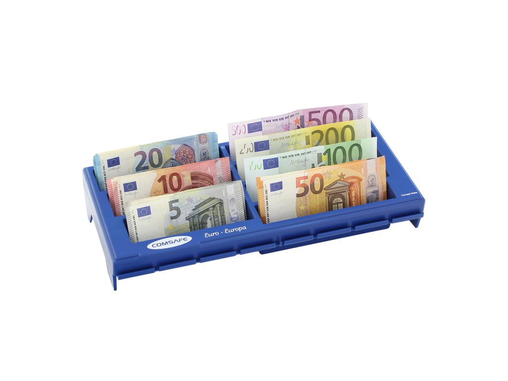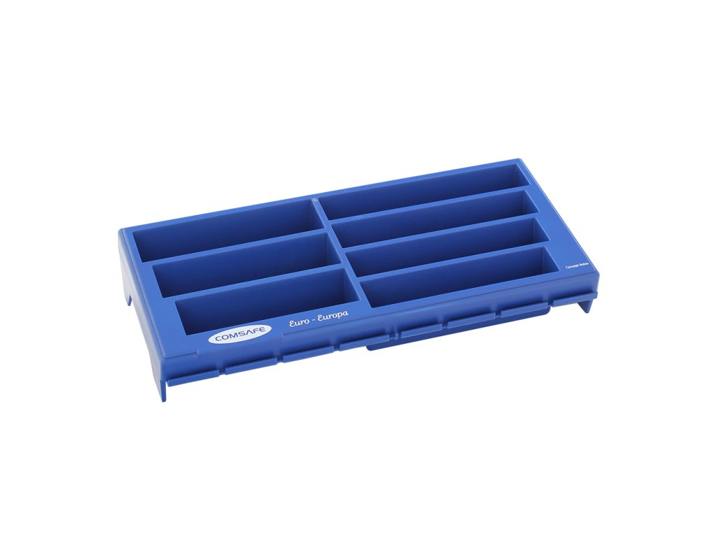 Hlavní výhody: Celkově 7 přihrádek Pro papírové bankovky Plastové provedení Modrá plastová přihrádka na bankovky různých nominálních hodnot. Celkově 7 přihrádek nabízí dostatek prostoru pro založení několika bankovek do jedné přihrádky. Své místo si najdou bankovky s nominální hodnotou 5€, 10€, 20€, 50€, 100€, 200€ a 500€. Zadní část je mírně vyvýšená pro snadnější manipulaci a ukládání bankovek. Přihrádka je vyhotovena z kvalitního plastu.Doplňkové parametry