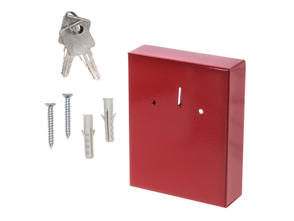 Hlavní výhody: Cylindrický zámek s 2 klíči Sklo je možné v případě nouze rozbít Uvnitř 1 háček na zavěšení Dodávané bez kladívka Červená nouzová skříňka pro jasné a viditelné označení a uschování důležitého klíče nebo menšího svazku klíčů. Jednoduché a funkční provedení zaručí, že v případě potřeby je možné sklo rozbít a dostat se k potřebnému klíči. Skříňku snadno připevníte na stěnu díky přibalenému materiálu na ukotvení.Doplňkové parametry