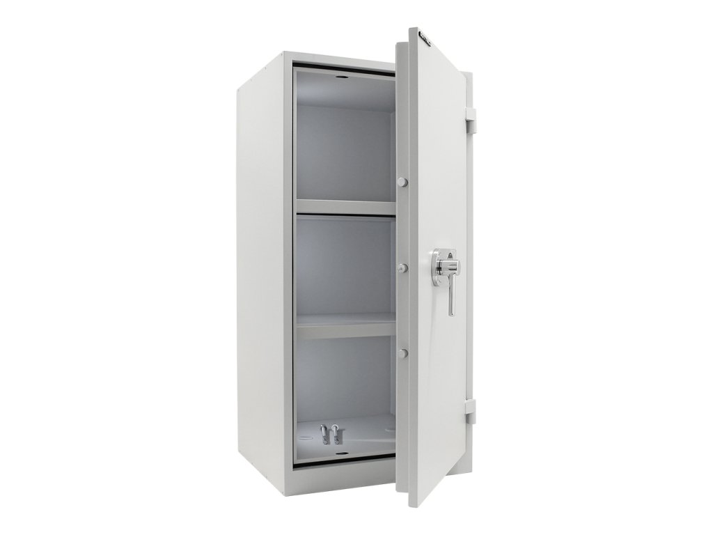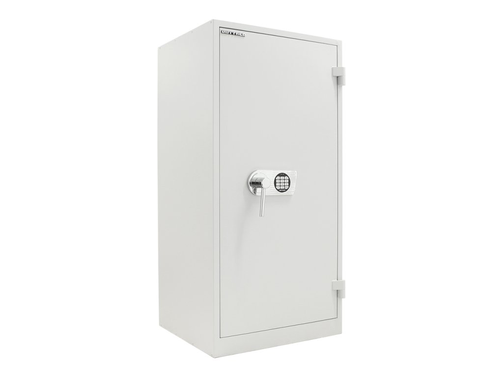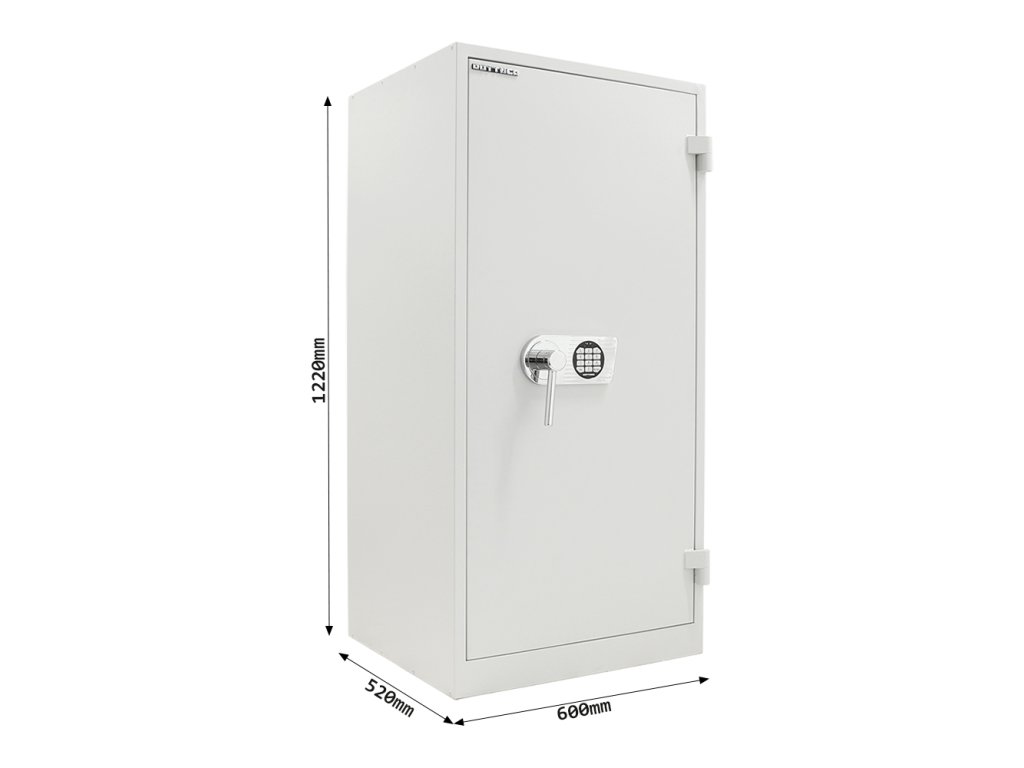 Hlavní výhody: Certifikovaný elektronický zámek Napájení 1 x 9V baterií (není součástí balení) Speciální výplň mezi stěnami Dvouplášťová konstrukce Nastavitelné 2 poličky uvnitř 3-stranný uzamykací mechanizmus Otevírání dveří až do 180° Možnost doobjednání registratury Možnost doobjednání teleskopické police Archivační skříň s kvalitním elektronickým zámkem nabízí zaručeno bezpečný pro vaše kancelářské dokumenty, šanony nebo jiné dokumenty, které potřebujete uschovat. V případě potřeby se vejde i menší kasička. Zámek je napájen 9V baterií a v případě vybití baterie jsou na vnější straně kontakty pro přiložení náhradní baterie. Dvouplášťová konstrukce disponuje speciální výplní mezi stěnami a tak skříň odolá i menšímu ohni. Křídlové dveře lze otevřít až do úhlu 180°. Po zadání hesla pomocí snadno čitelné klávesnice se dveře skříně uzamknou 3-stranným mechanismem. Uvnitř najdete celkem 2 nastavitelné poličky a zároveň existuje možnost doobjednat některou z naší doplňkové výbavy. Skříň si tak plně přizpůsobíte svým potřebám. Kování zámku zvyšuje celkovou vnější hloubku skříně o 60 mm.