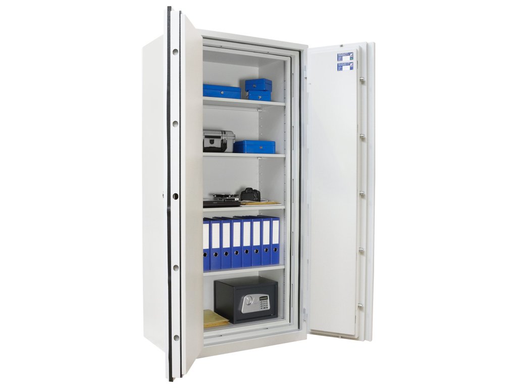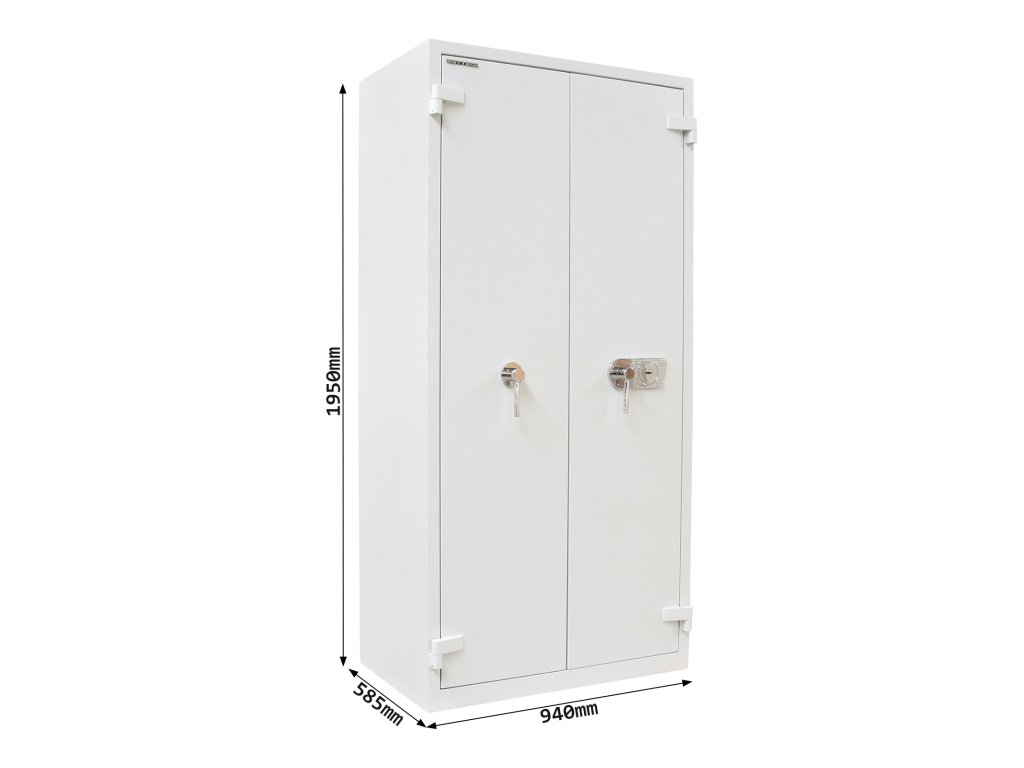 Hlavní výhody: Certifikovaný trezorový zámek Bezpečnostní třída S2 (ČSN EN 14450) Ohnivzdornost po dobu 60 minut pro papír Dvouplášťová skříň 3-stranný uzamykací mechanizmus Otevírání dveří až do 180° 4 poličky uvnitř Možnost doobjednat teleskopickou polici Možnost doobjednat teleskopickou závěsnou registraturu Otvory na ukotvení na spodní a zadní straně skříně Ohnivzdorná archivační skříň s certifikovaným trezorovým zámkem a bezpečnostní třídou S2 nabízí výbornou možnost jak přehledně a bezpečně uschovat všechny vaše dokumenty a šanony. Skříň se dodává s 2 klíči na otevření zámku a je ohnivzdorná po dobu 60 minut. Uložené dokumenty jsou chráněny nejen před krádeží ale i ohněm a vysokými teplotami. Dvouplášťové provedení spolu s 3-stranným uazmykacím mechanismem a 4 poličkami uvnitř poskytuje výborný základ pro bezpečnou archivaci dokumentů. V případě potřeby je možné doobjednat doplňkovou výbavu. Na spodní a zadní straně skříně jsou připraveny otvory pro ukotvení. Kotvící materiál je součástí balení. Kování zámku zvyšuje celkovou vnější hloubku skříně o 60 mm.