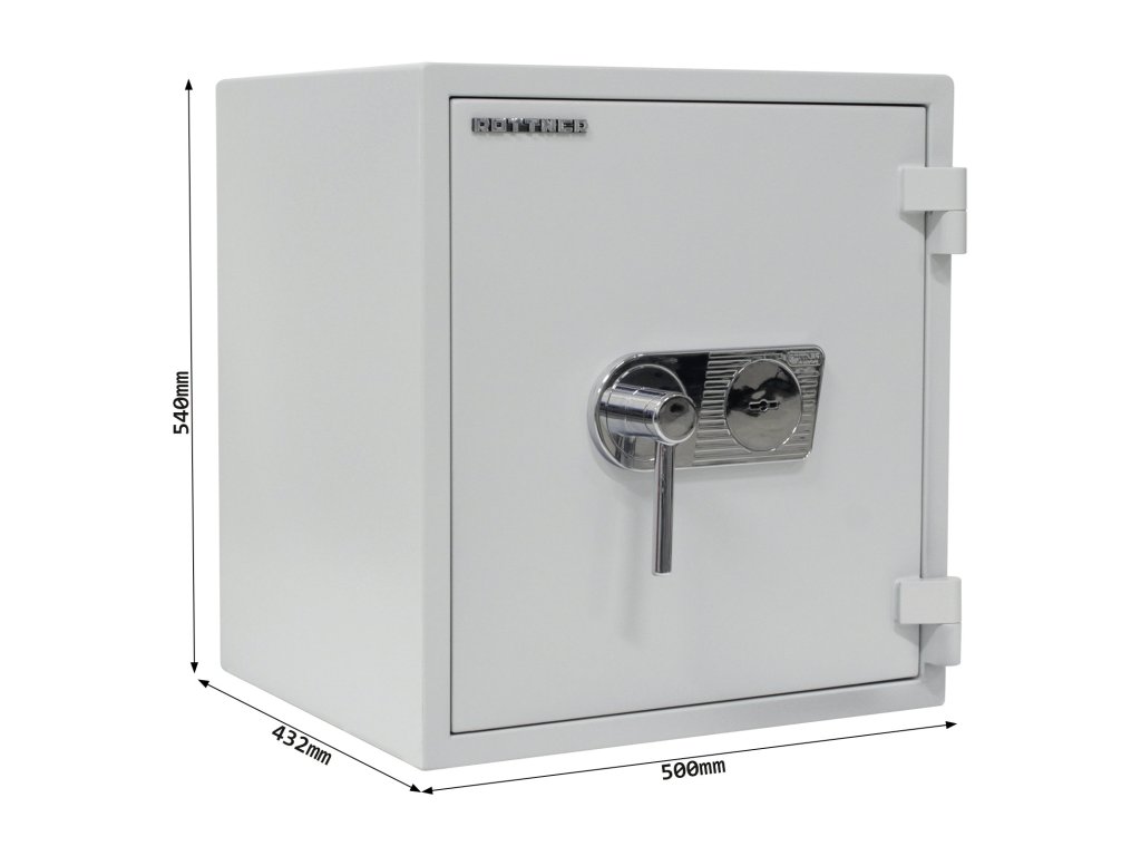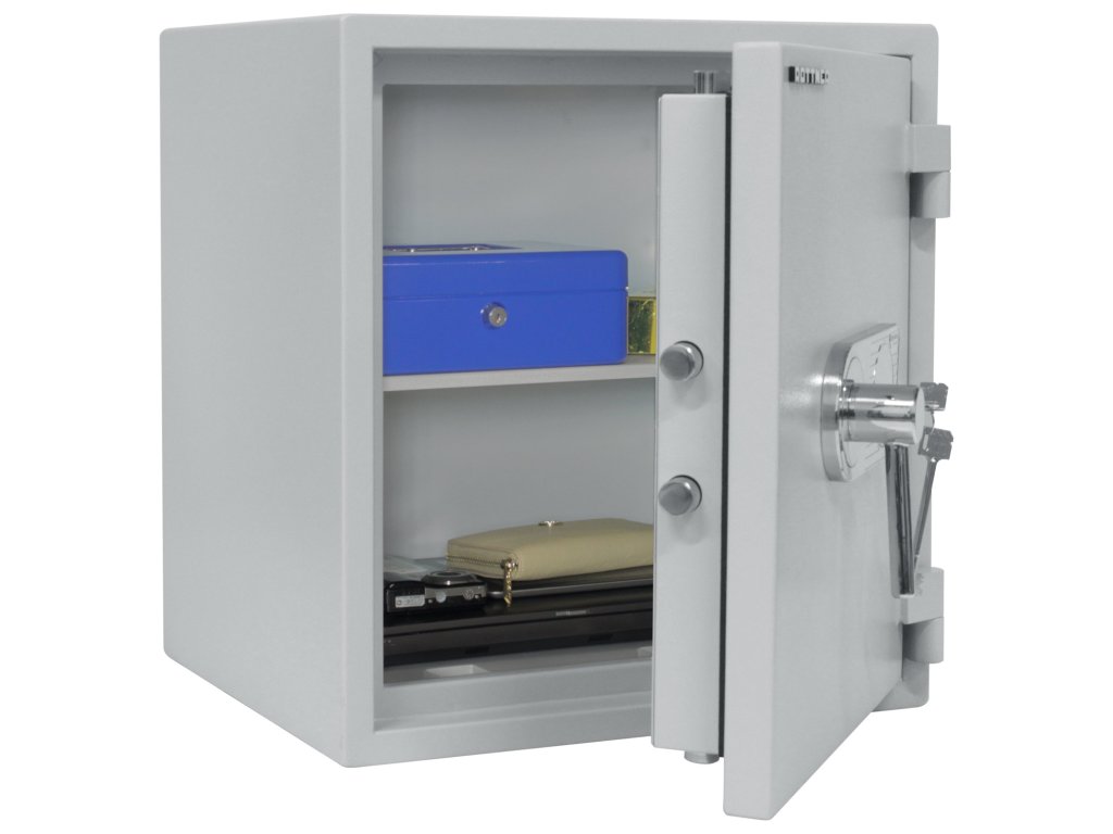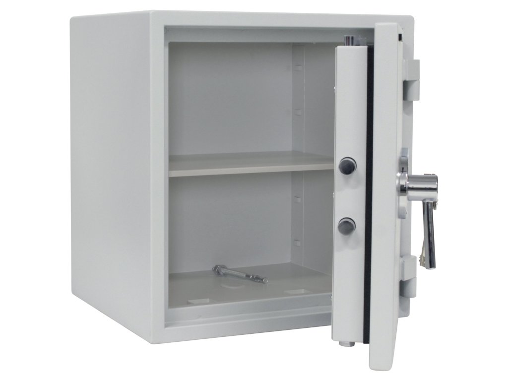 Hlavní výhody: Certifikovaný trezorový zámek s 2 klíči Bezpečnostní třída I (ČSN EN 1143-1) Ohnivzdornost po dobu 30 minut pro papír Možnost úschovy i zbraní a střeliva podle č.190 / 2003 Sb. z. Dvouplášťový trezor 3-stranný uzamykací mechanizmus Polička uvnitř Otevření dveří až do 180° Možnost doobjednání teleskopické police Možnost doobjednání teleskopické závěsné registratury Otvor na ukotvení na spodní straně trezoru Dvouplášťový trezor z modelové řady Opal Fire Premium nabízí certifikovaný trezorový zámek a 2 klíči na otevření. Uložené věci jsou chráněny bezpečnostní třídou I (ČSN EN 1143-1) a kromě klasických věcí jako šperky, cennosti, šanony nebo cestovní doklady je možné uložit i krátké zbraně a munici. Trezor je ohnivzdorný a vydrží proti vlivům ohně až po dobu 30 minut. Dveře lze otevřít až od úhlu 180°. Uvnitř se nachází polička a otočením klíče se dveře uzamknou 3-stranným uzamykacím mechanismem. Výhodou je možnost doobjednání doplňkové výbavy, díky čemuž si trezor můžete vybavit tak, jak potřebujete. Na spodní straně je připraven otvor pro ukotvení o podlahu. Kotvící materiál je součástí balení. Kování zámku zvyšuje celkovou vnější hloubku trezoru o 60 mm.