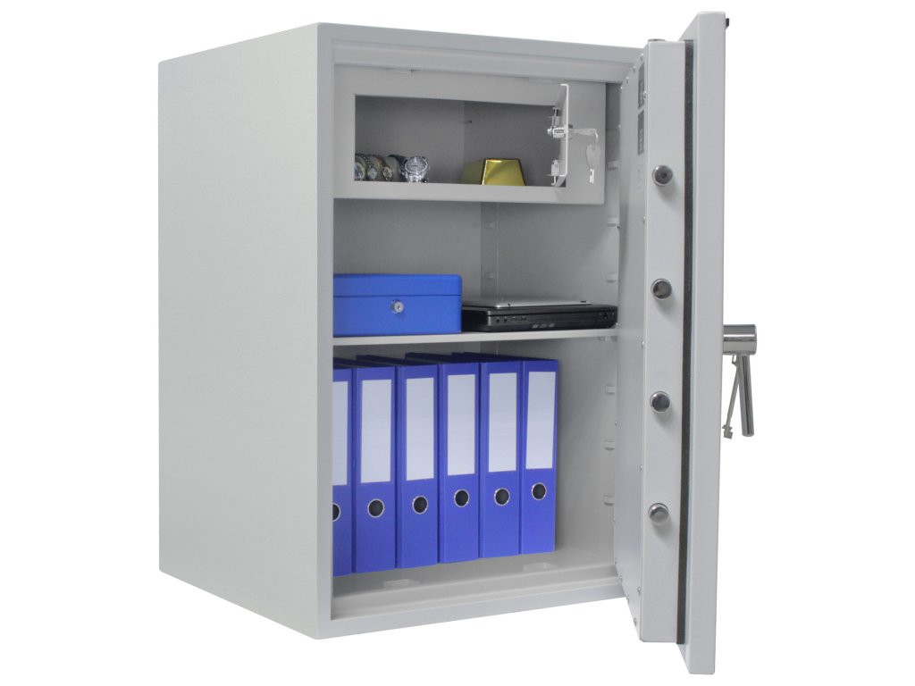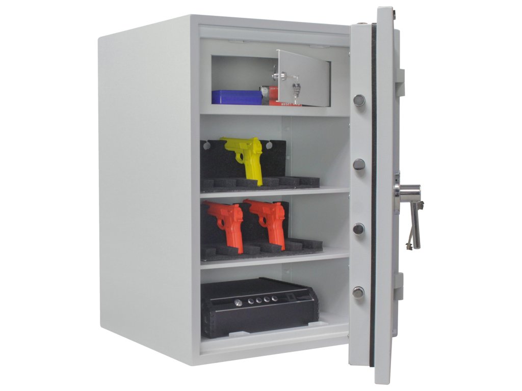 Hlavní výhody: Certifikovaný trezorový zámek Bezpečnostní třída I (ČSN EN 1143-1) Ohnivzdornost po dobu 30 minut Možnost úschovy i zbraní a střeliva podle č.190 / 2003 Sb. z. Dvouplášťový trezor Vnitřní schránka s cylindrickým zámkem a 2 klíči 3-stranný uzamykací mechanizmus 2 poličky uvnitř Otevření dveří až do 180° Možnost doobjednání teleskopické police Možnost doobjednání teleskopické závěsné registratury Otvory na ukotvení na spodní straně trezoru Nábytkový ohnivzdorný trezor z rodiny trezorů Opal Fire Premium nabízí bezpečný a certifikovaný trezorový zámek dodávaný spolu s 2 klíči. Disponuje bezpečnostní třídou I (ČSN EN 1143-1) a ohnivzdornosti po dobu 30 minut. Dovnitř lze uložit klasické cennosti, šperky, několik šanonů, cestovní a jiné dokumenty ale i krátké zbraně a munici. Provedení trezoru je dvouplášťové s 3-stranný uzamykacím mechanismem. Po otevření dveří až do úhlu 180° najdete uvnitř trezoru 2 poličky a vnitřní schránku, kterou lze samostatně uzamknout s dodávanými 2 klíči. V případě potřeby je možné využít možnost doobjednání doplňkové výbavy. Otvory na ukotvení trezoru se nacházejí na spodní straně. Kotvící materiál je součástí balení. Kování zámku zvyšuje celkovou vnější hloubku trezoru o 60 mm.