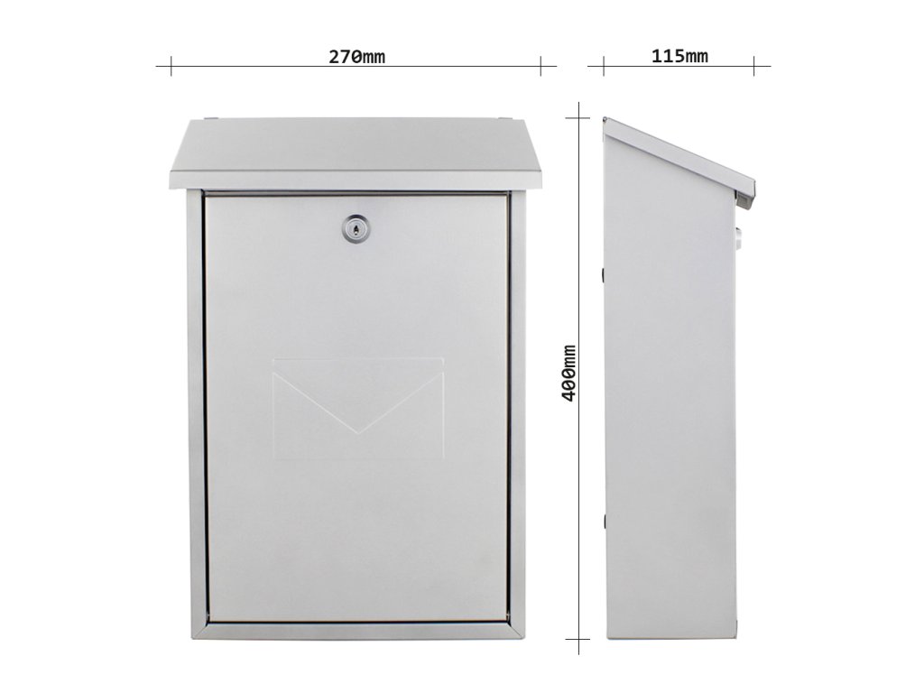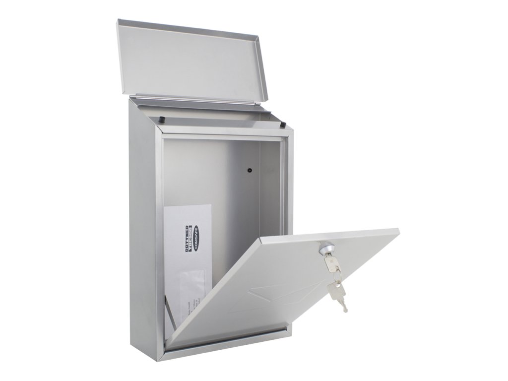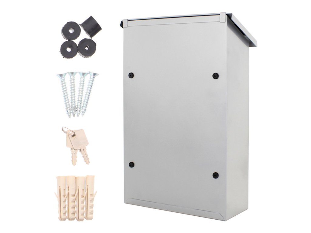Hlavní výhody: Cylindrický zámek se 2 klíči Horní vhod na poštu Odolná proti povětrnostním vlivům Odolná proti korozi Kvalitní pozinkovaný plech Stříbrná poštovní schránka Parma nabízí nádherný jednoduchý design a uzamčení pošty na klasický cylindrický zámek. Spolu se schránkou obdržíte i 2 klíče k otevření zámku. Doručenou poštu vám pošťák vhodí přes horní vhod. Horní vhod je chráněn stříškou, která je šikmo umístěna, aby dešťová voda nevnikala dovnitř schránky a také, aby stékala ze schránky. Velkou výhodou je odolnost proti povětrnostním vlivům a korozi. Doručenou poštu jednoduše vyberete přes přední dvířka. Poštovní schránku upevníte na fasádu, plot nebo zeď. Potřebný materiál na upevnění je součástí balení.Doplňkové parametry