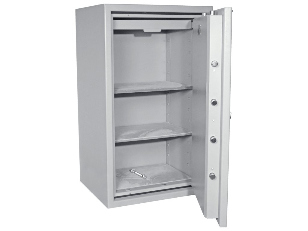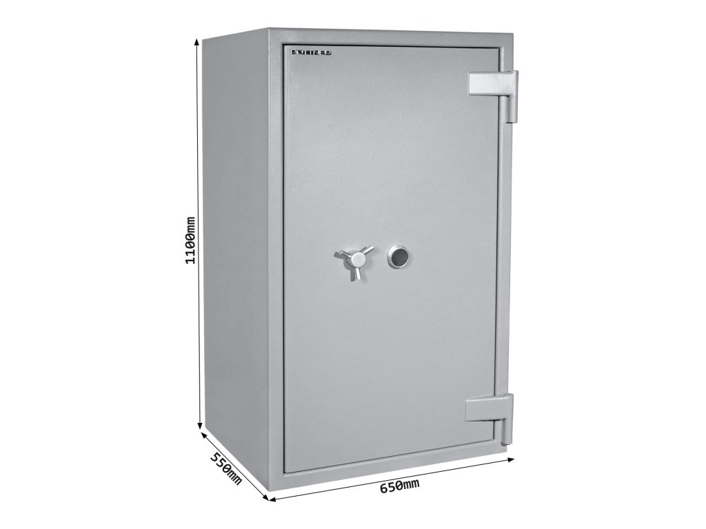 Hlavní výhody: Certifikovaný trezorový zámek Bezpečnostní třída III. (ČSN EN 1143-1) Vysouvatelná zásuvka 2 poličky uvnitř 3 stranný uzamykací mechanismus Otevírání dveří až do 180° Otvory pro ukotvení na spodní straně trezoru Certifikovaný nábytkový trezor z modelové řady Pearl disponuje certifikovaným trezorovým zámkem a certifikátem bezpečnostní třídy III. (ČSN EN 1143-1). Uvnitř nábytkového trezoru se nachází vysouvatelná zásuvka pro uchování menších cenností a 2 nastavitelné poličky. Trezorové dveře se uzamykají 3-stranným uzamykacím mechanismem a otevírají se až do úhlu 180°. Spodní strana má připravené otvory pro ukotvení. Materiál pro ukotvení je součástí balení. Kování zámku zvyšuje celkovou vnější hloubku trezoru o 60 mm.