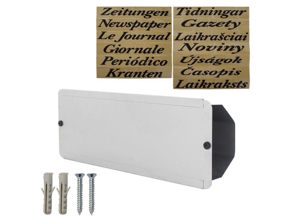 Hlavní výhody: Ideální na noviny a denní tisk Odolnost proti povětrnostním vlivům Samolepky s označením Kvalitní pozinkovaný plech Samostatný box na noviny a denní tisk ve stříbrné barvě nabízí adekvátní prostor pro vámi objednané noviny, časopisy nebo i reklamní letáky. Kvalitní pozinkovaný plech odolává povětrnostním vlivům a nerezaví. Máte tak jistotu, že box můžete umístit i na fasádu domu nebo zeď či plot. V balení naleznete také samolepky v různých jazycích. Box má připravené otvory pro upevnění na stěnu. Materiál k upevnění je součástí balení.Doplňkové parametry