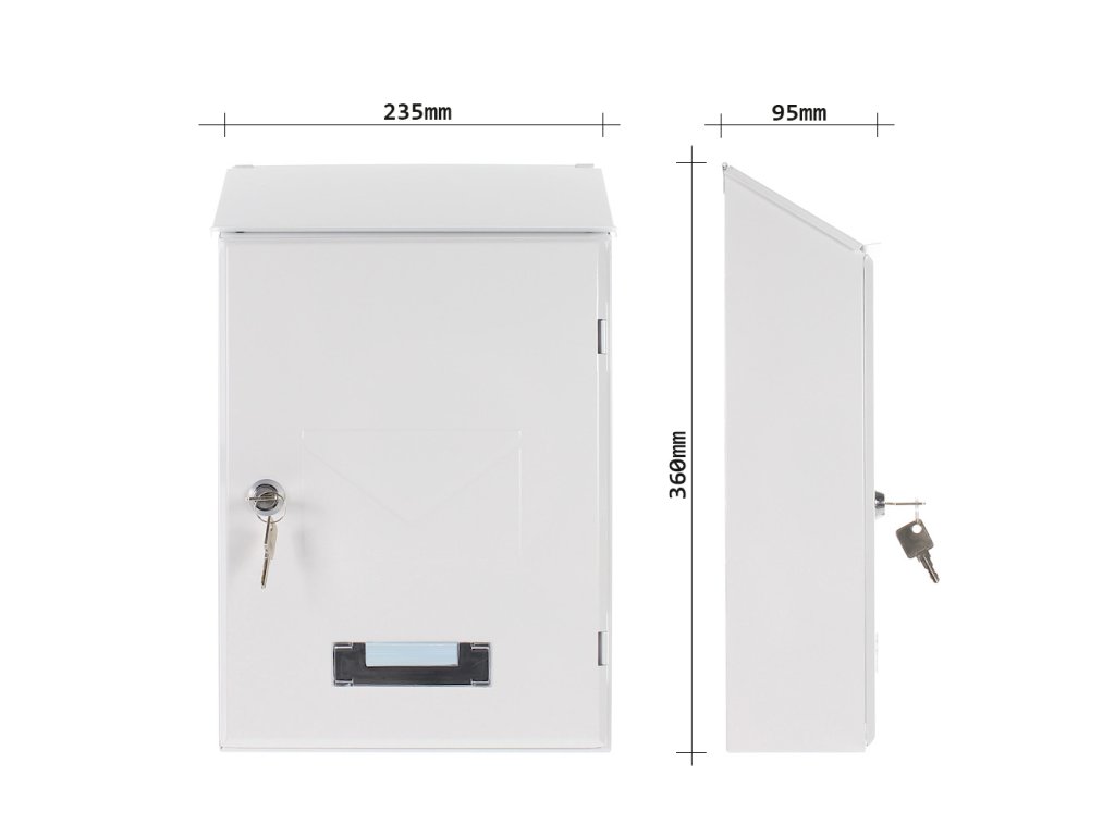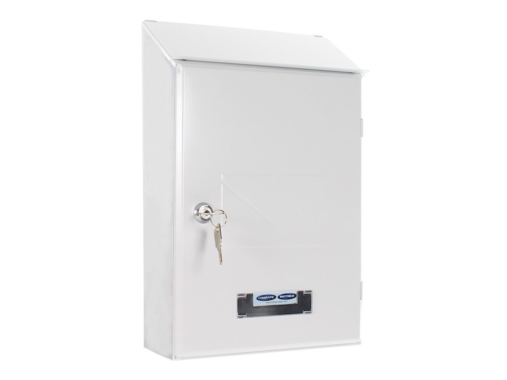 Hlavní výhody: Cylindrický zámek se 2 klíči Horní vhod pro poštu Jmenovka Odolnost proti povětrnostním vlivům Kvalitní ocelové provedení Bílá poštovní schránka Pisa nabízí univerzální barevné provedení a jednoduchý vzhled. Na předních dvířkách je vyražen symbol poštovní schránky. Pošta se vhazuje přes horní vhod, který je chráněn stříškou. Dešťová voda a jiné nečistoty tak neproniknou dovnitř poštovní schránky. Šikmá horní část schránky zároveň zajistí, že voda snadno steče dolů. Na dolní straně se nachází místo na jmenovku. Poštovní schránku vám dodáme zabalenou v kartónové krabici. Na zadní straně jsou připraveny otvory pro upevnění. Materiál k upevnění je součástí dodávky.Doplňkové parametry
