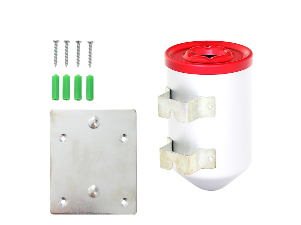 Hlavní výhody: Velká kapacita popelníku Bezpečnostní upevnění na stěnu Víko se 4 drážkami na cigarety Rychlé vyprázdnění Šedý nástěnný popelník je ideální volbou nejen do exteriéru i do interiéru. Vrchní červené víko má v sobě dostatečně velký otvor pro popel z cigaret. Zároveň má 4 drážky pro odložení cigaret. Kapacita popelníku je opravdu dostačující i proto ho nebudete muset příliš často vysypávat. Pro vysypávání popelníku je vymyšlený rychlý systém vyprazdňování. Vše potřebné pro upevnění popelníku je součástí dodávky.