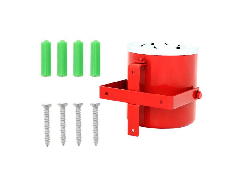 Hlavní výhody: Velká kapacita popelníku Bezpečnostní upevnění na stěnu Víko se 4 drážkami na cigarety Rychlé vyprázdnění Chytrý nástěnný popelník se spolehlivým upevněním na stěnu. Atraktivní červená barva jednoznačně upozorní, kde patří popel z cigaret. Popelník má v horní straně víko s dírami, pro propad popela a zároveň drážky na odložení cigarety. Potěší rychlý systém na vyprazdňování popelníku. Upevňovací materiál je součástí balení.