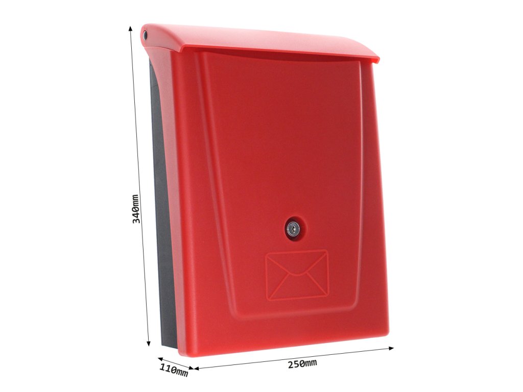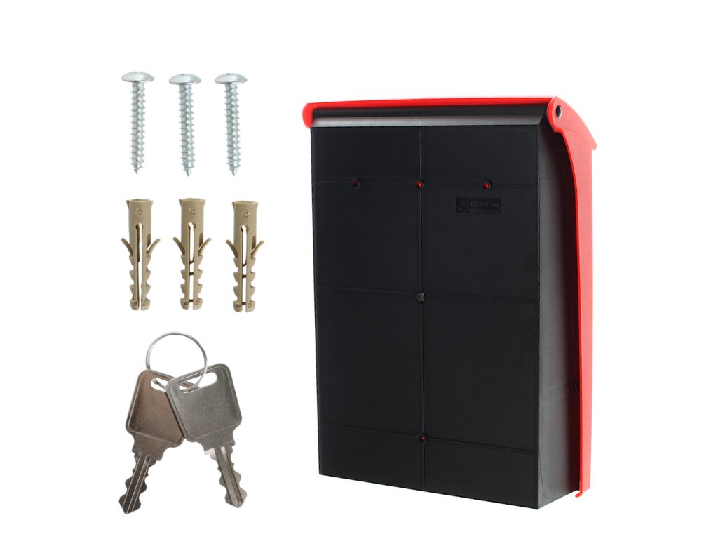 Hlavní výhody: Cylindrický zámek se 2 klíči Horní vhod pro poštu max. A4 Bez jmenovky Plastové provedení Plastová poštovní schránka nabízí netredičné provedení z plastu. Doručené bude chráněna klasickým cylindrickým zámkem se 2 klíči. Poštu vám pošťák vhodí přes horní vhod, který je dostatečně velký pro zásilky do maximální velikosti A4. Vhod je chráněn plastovou stříškou a přední dvířka určené na výběr pošty jsou bez jmenovky. Na zadní straně poštovní schránky jsou připraveny otvory pro upevnění. Materiál k upevnění je součástí balení.Doplňkové parametry