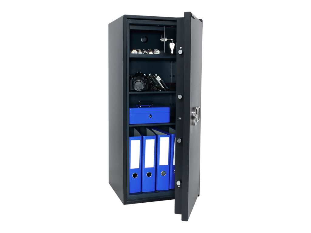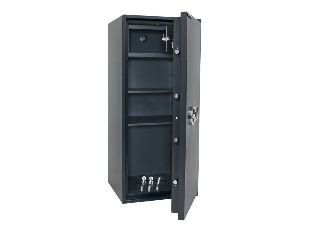Hlavní výhody: Certifikovaný elektronický zámek Bezpečnostní třída S2 (ČSN EN 14450) Možnost úschovy i zbraní a munice podle č. 190/2003 Sb Vnitřní schránka s cylindrickým zámkem a 2 klíči Dvouplášťový nábytkový trezor Napájení 1 x 9V baterií (součástí balení) Tloušťka pláště dveří 70 mm 2 poličky uvnitř Elektronické nouzové otevírání externí baterií a vnějšími kontakty Otvory na ukotvení na spodní a zadní straně trezoru Náš největší model nábytkového trezoru z modelové řady Power Safe nabízí štědrý úložný prostor a vysokou míru variability uvnitř. Trezor se může pochlubit certifikovaným elektronickým zámkem a bezpečnostní třídou S2 (ČSN EN 14450). I díky tomu můžete dnu uložit nejen osobní cennosti, šperky, důležité dokumenty, šanony, malé pokladničky ale i zbraně a munici. Napájení je řešeno prostřednictvím 9V baterie, kterou najdete v balení spolu s trezorem. Vnitřek nabízí možnost předělení prostoru podle vašich představ a to pomocí 2 poliček. V horní straně se nachází samostatně uzamykatelná vnitřní schránka se 2 klíči. Trezor je možné upevnit pomocí připravených otvorů na spodní a zadní straně. Kotvící materiál je součástí balení. Kování zámku zvyšuje celkovou vnější hloubku trezoru o 15 mm.