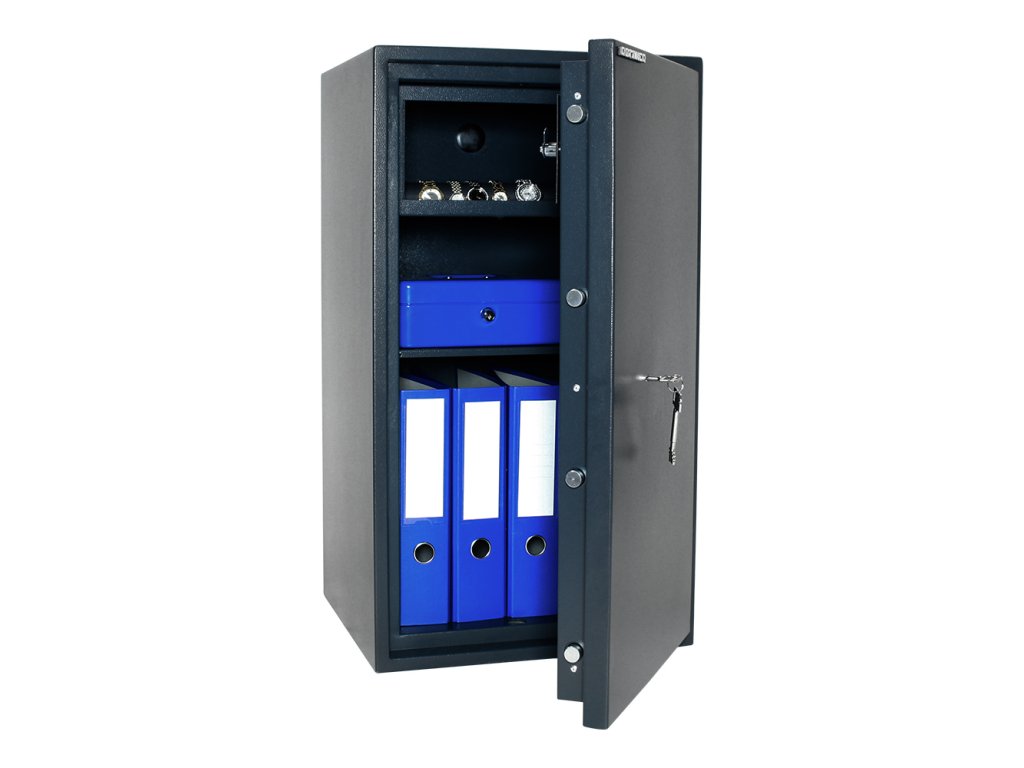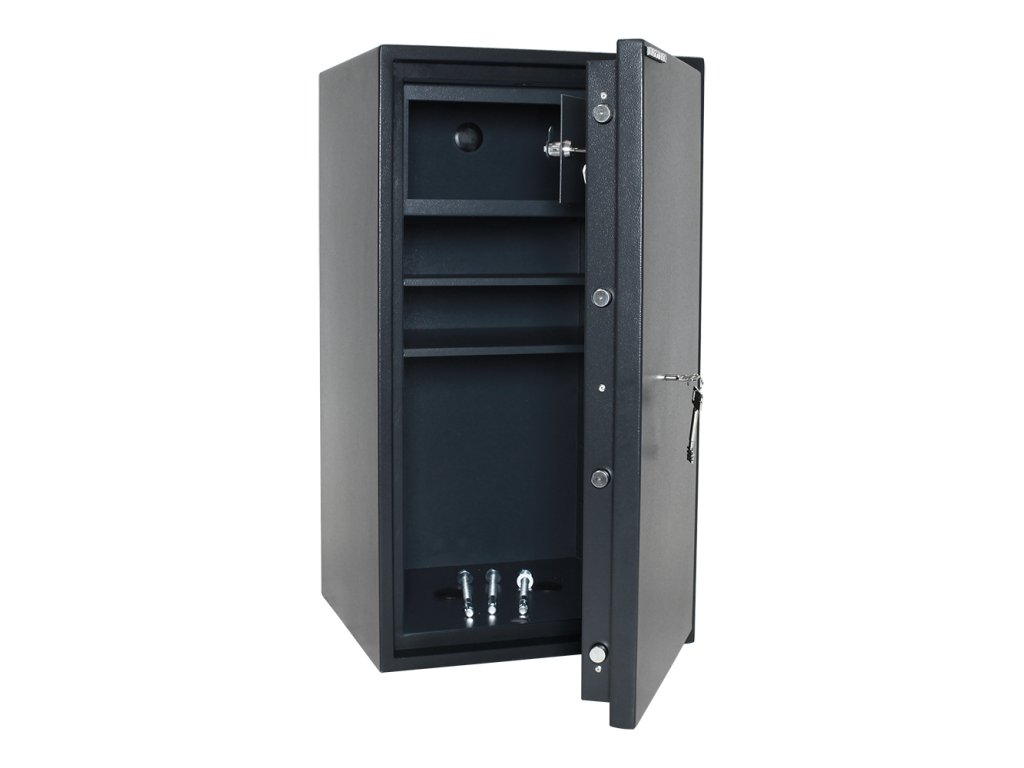 Hlavní výhody: Certifikovaný trezorový zámek Bezpečnostní třída S2 (ČSN EN 14450) Možnost úschovy i zbraní a munice podle č. 190/2003 Sb Vnitřní schránka s cylindrickým zámkem a 2 klíči Dvouplášťový trezor Tloušťka pláště dveří 70 mm 2 poličky uvnitř Otvory na ukotvení na spodní a zadní straně trezoru Bezpečný a prostorný trezor je základem pro každý rodinný dům nebo kancelář. Certifikovaný trezorový zámek a certifikát o bezpečnostní třídě S2 (ČSN EN 14450) postačuje na uschování vašich vzácných šperků, drobností, důležitých dokumentů a šanonů. V horní části se nachází vnitřní schránka, která skvěle poslouží jako úschovný prostor pro munici. Dvouplášťové provedení s tloušťkou dveří 70 mm nenechají nikoho na pochybách, že toto je ten správný trezor pro vaše cennosti. Materiál na ukotvení je součástí balení.