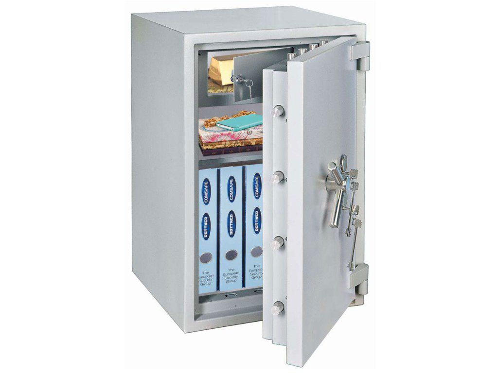 Hlavní výhody: Certifikovaný trezorový zámek Certifikovaný elektronický zámek Bezpečnostní třída IV. (ČSN EN 1143-1) Ohnivzdornost po dobu 30 minut pro papír Napájení 1 x 9V baterie (není součástí balení) Vnitřní schránka s cylindrickým zámkem a 2 klíči 3-stranný uzamykací mechanizmus Polička uvnitř Příprava pro EMA Otevírání dveří až do 180° Možnost doobjednání teleskopické police Možnost doobjednání teleskopické zásuvky Možnost doobjednání teleskopické registratury Otvory na ukotvení na spodní straně trezoru Šedý nábytkový trezor z modelové řady Projekt Fire Premium disponuje kombinací certifikovaného a trezorového zámku. Trezorový zámek je dodáván spolu s 2 klíči a pro napájení elektronického zámku slouží 9V baterie (není součástí balení). Trezor má certifikát bezpečnostní třídy IV. (ČSN EN 1143-1) a certifikát ohnivzdornosti, a to až po dobu 30 minut pro papírové dokumenty. Pro lepší uložení dokumentů, šanonů nebo dalších věcí slouží polička a vnitřní schránka uvnitř trezoru. Dveře trezoru Projekt 65 EL Fire Premium lze otevřít do úhlu 180° a mají 3-stranný uzamykací mechanismus. Trezor disponuje připraví pro EMA a v případě potřeby je možné za doplatek trezor vybavit doplňkovým příslušenstvím. Spodní strana má otvory pro ukotvení. Materiál na ukotvení je součástí balení. Kování zámku zvyšuje celkovou vnější hloubku trezoru o 60 mm.