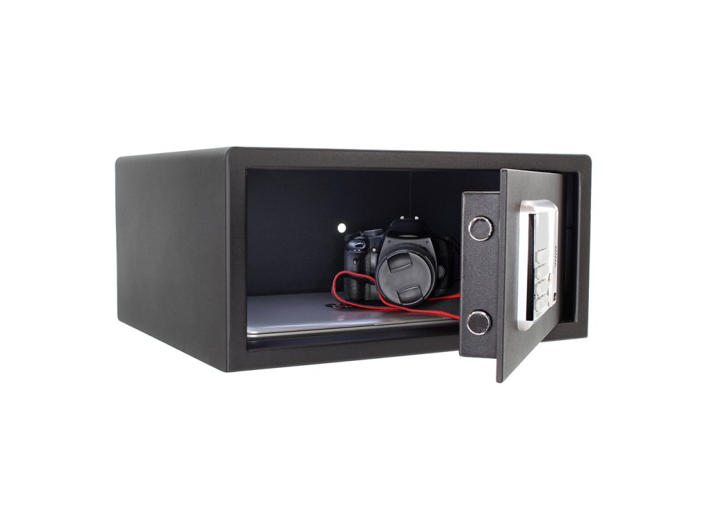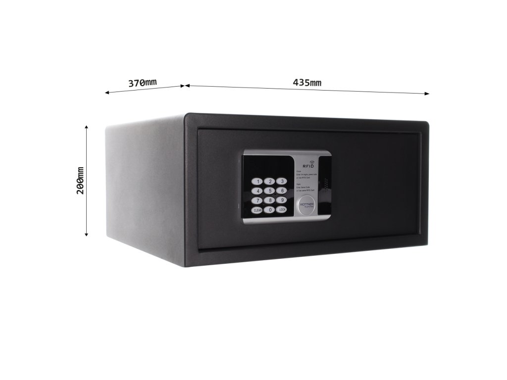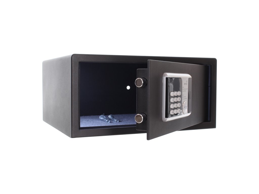 Hlavní výhody: Elektronický zámek s 2 klíči Možnost otevřít bankovní karty nebo jinou RFID kartou Možnost otevřít i zadáním klasického kódu Vhodný sejf i pro uložení notebooku Napájení 4 x 1,5V AA bateriemi (nejsou současti balení) Posledních 100 přístupů uložených v paměti Jednoplášťový sejf s tloušťkou korpusu 1,5 mm Osvětlený interiér Mechanické nouzové otevírání s cylindrickým zámkem a 2 klíči Otvory na ukotvení na spodní a zadní straně Moderní nábytkový sejf nabízí kromě klasického elektronického zámku se zadáváním hesla i možnost otevření prostřednictvím kreditní karty nebo jiné karty s RFID čipem. Udělejte tak ráznému konci různým klíčem nebo zdlouhavým, těžko zapamatovatelným heslům. Napájení je řešeno klasickým způsobem, a to 1,5V bateriemi. V případě potřeby je možné vypnout zobrazování číslic na displeji. Vnitřní paměť sejfu registruje posledních 100 otevření a zavření. Uvnitř sejfu je dostatek prostoru pro uložení notebooku a najdete tam i vnitřní osvětlení. Sejf ukotvíte pomocí připravených otvorů na spodní a zadní straně. Kotvící materiál je součástí balení. Kování zvyšuje celkovou vnější hloubku sejfu o 15 mm.Doplňkové parametry