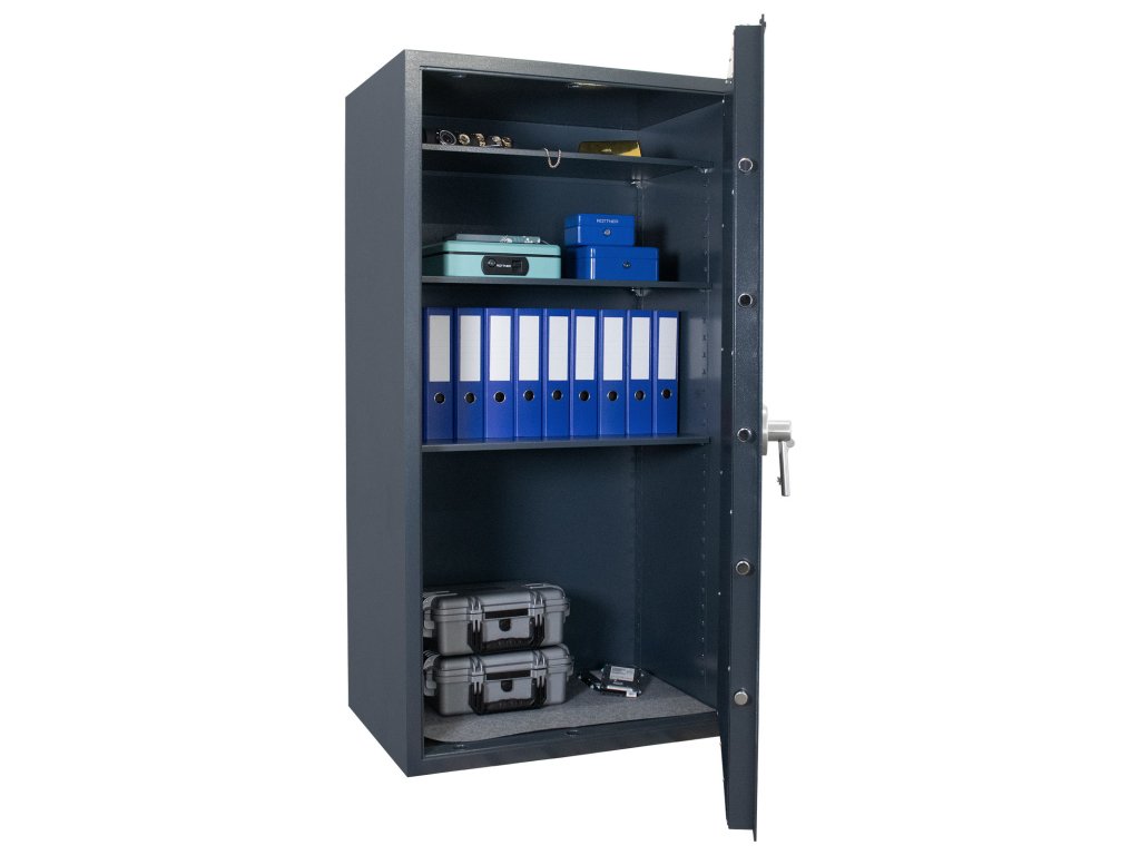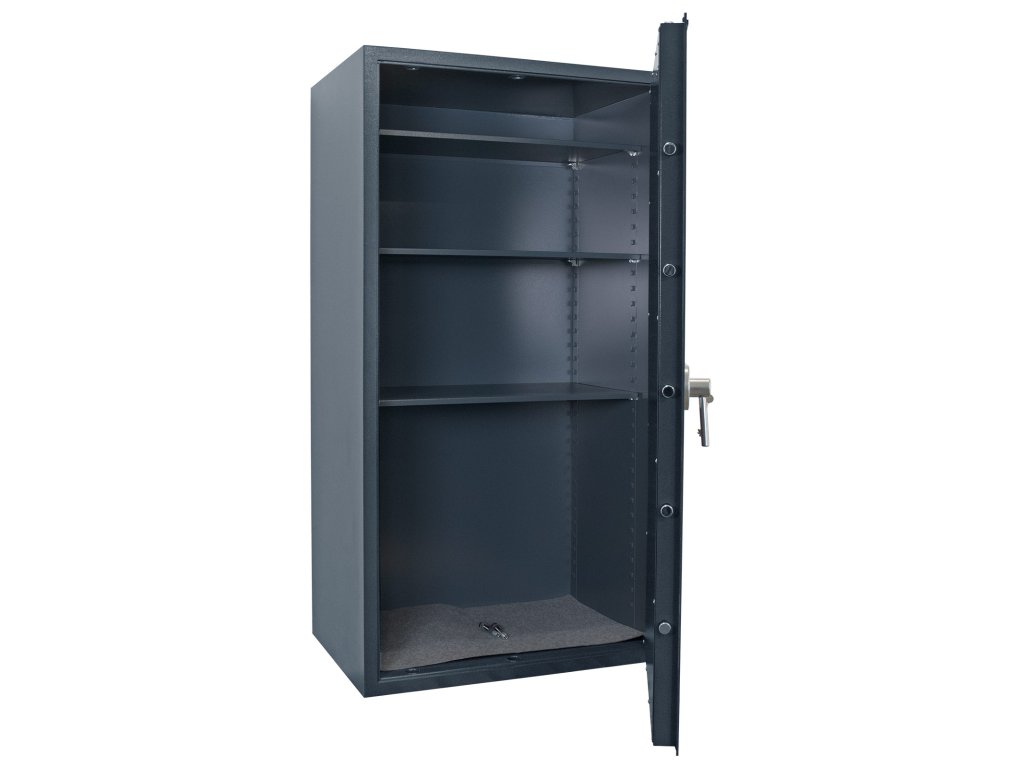 Hlavní výhody: Certifikovaný trezorový zámek Bezpečnostní třída 0 (ČSN EN 1143-1) Možnost úschovy i zbraní a munice podle č. 190/2003 Sb. z. 3-stranný uzamykací mechanizmus Dvouplaštový korpus trezoru 3 nastavitelné poličky uvnitř Tloušťka dveří 5 mm Otvory na ukotvení na spodní straně trezoru Trezor Samoa 160 s certifikovaným trezorovým zámkem je dodáván spolu s 2 klíči. Disponuje bezpečnostní třídou 0 (ČSN EN 1143-1) a kromě cenností, šperků, dokumentů, dokladů nebo šanonů v něm uschováte i krátké zbraně a munici. Dveře trezoru mají plášť hrubý 5 mm a uzamknou se pomocí 3-stranného uzamykacího mechanismu. Korpus trezoru je dvouplášťový a uvnitř se nacházejí 3 nastavitelné poličky. Na spodní straně trezoru se nacházejí dva otvory pro ukotvení. Kotvící materiál je součástí balení. Kování zámku zvyšuje celkovou vnější hloubku trezoru o 60 mm.