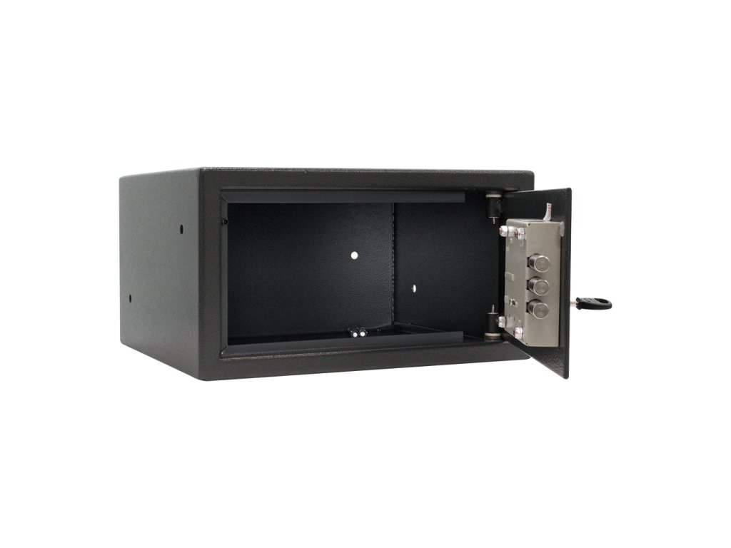 Hlavní výhody: Standardní trezorový zámek s 2 klíči Jednoplášťový sejf Korpus hrubý 2 mm Tloušťka pláště dveří 4 mm Otvory na ukotvení na každé straně sejfu, kromě dveří Antracitový sejf v jednoplášťovém provedení nabízí korpus tloušťky 2 mm nabízí místo pro menší dokumenty, cestovní doklady, šperky nebo cennosti. Sejf disponuje standardním trezorovým zámkem s 2 klíči. Výhodou sejfu Saturn LE 170 je množství připravených otvorů na ukotvení. Otvory zároveň umožňují skládání sejfů do sestav. Kromě dveří se otvory nacházejí na všech stěnách sejfu. Materiál na ukotvení je součástí balení.