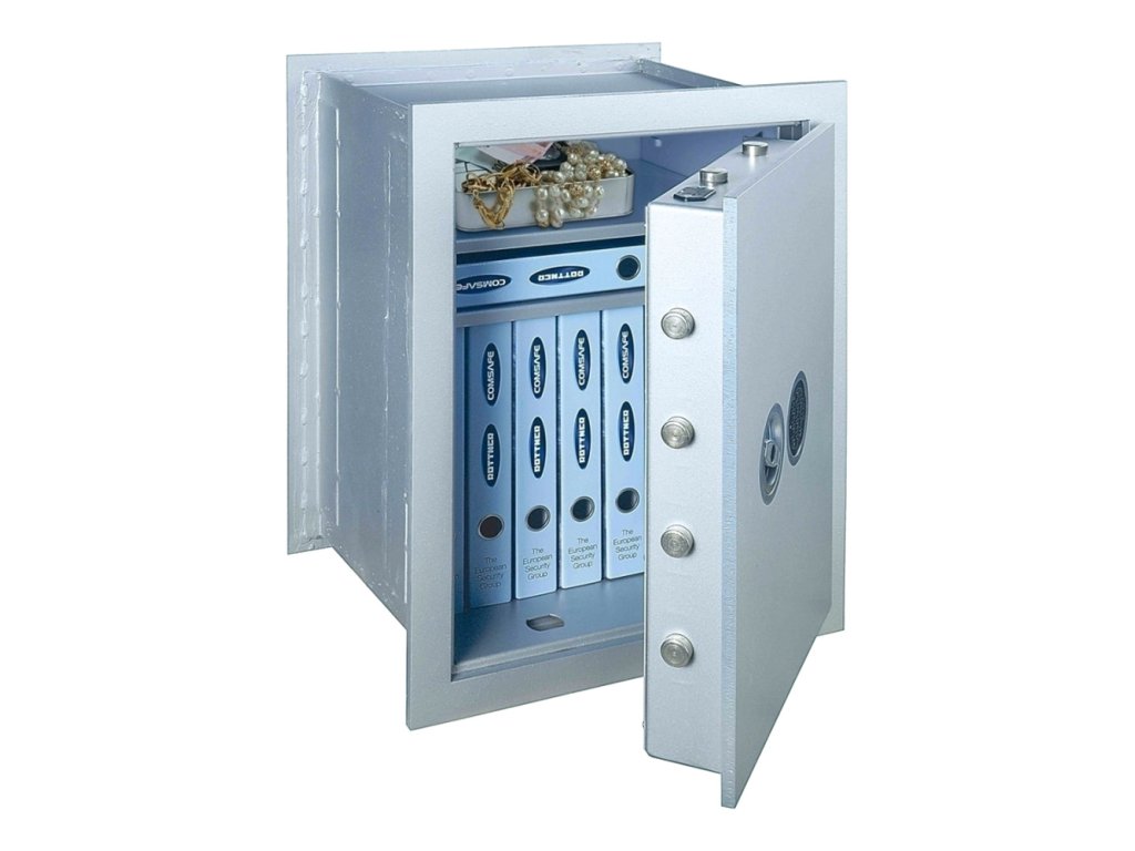 Hlavní výhody: Certifikovaný trezorový zámek s 2 klíči Bezpečnostní třída I (ČSN EN 1143-1) Jednoplášťový korpus 4-stranný uzamykací mechanizmus Otevírání dveří do 90° 2 poličky uvnitř Minimální tloušťka betonové obezdívky kolem trezoru je min. 10 cm Možnost doobjednání vnitřního sejfu Možnost doobjednání teleskopické police Možnost doobjednání teleskopické registratury Stříbrný stěnový trezor z modelové řady GSE Premium má certifikovaný trezorový zámek dodávaný spolu s 2 klíči. Disponuje certifikátem bezpečnostní třídy I (ČSN EN1143-1) a jednoplášťovým korpusem. Dveře trezoru lze otevřít do úhlu 90° a uzavírá se pomocí 4-stranného uzamykacího mechanismu. Uvnitř trezoru se nacházejí 2 nastavitelné poličky. Upozorňujeme, že pro správné a bezpečné uložení trezoru do zdi je třeba, aby betonová obezdívka měla kolem trezoru tloušťku minimálně 10 cm.