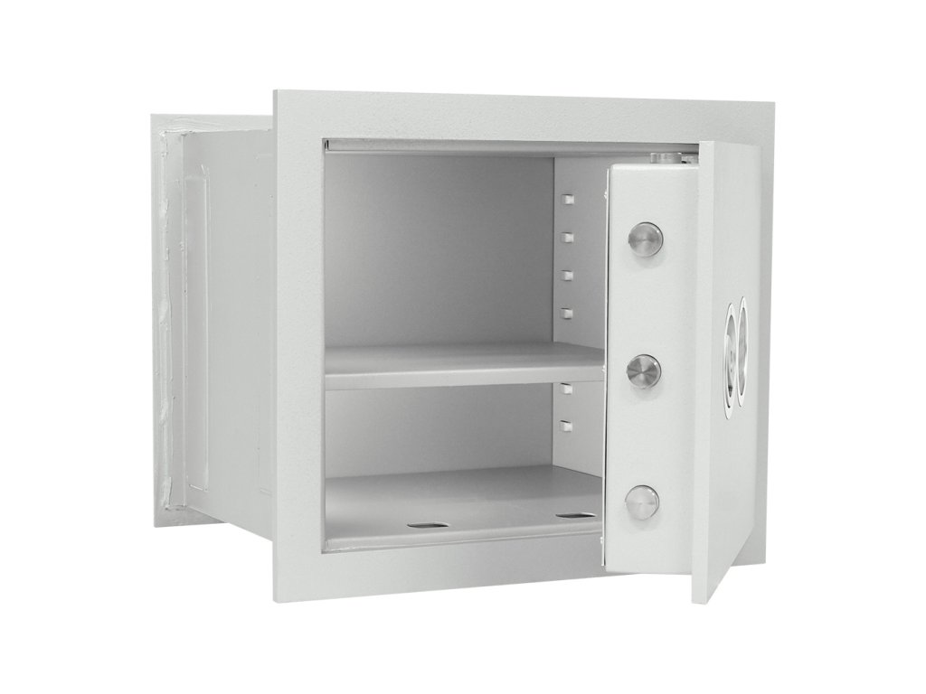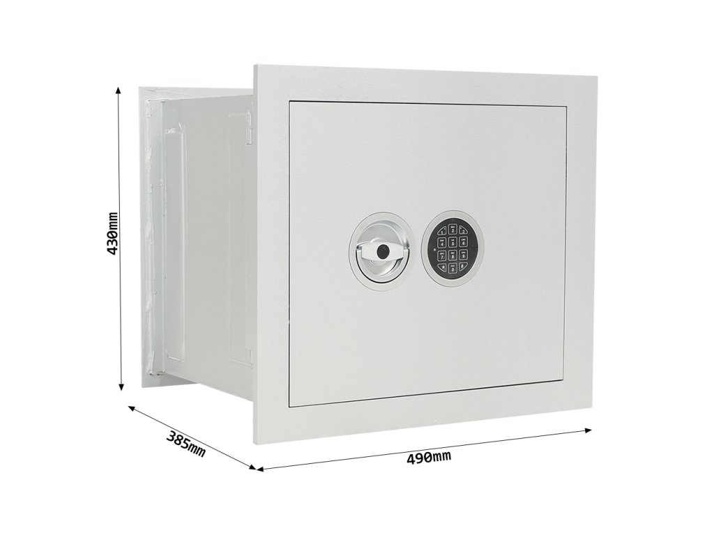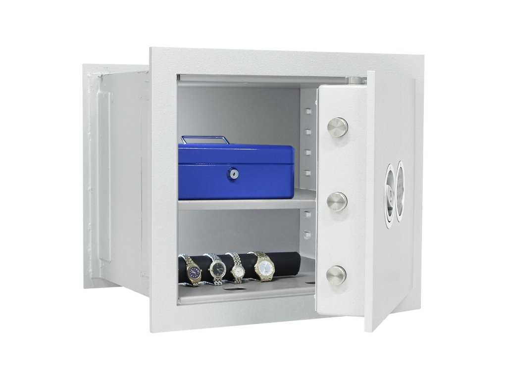 Hlavní výhody: Certifikovaný elektronický zámek Bezpečnostní třída I (ČSN EN 1143-1) Napájení 1 x 9V baterií (není součástí balení) Jednoplášťový korpus 4-stranný uzamykací mechanizmus Otevírání dveří do 90° Polička uvnitř Minimální tloušťka betonové obezdívky kolem trezoru je min. 10 cm Možnost doobjednání teleskopické police Možnost doobjednání teleskopické registratury Stěnový trezor Stone SE 45 EL Premium nabízí výbornou možnost, jak vhodně umístit trezor do vašeho domu, bytu nebo firmy. Trezor disponuje elektronickým zámkem, který je napájen klasickou 9V baterií. V případě vybití baterie jsou na vnější straně kontakty, na které stačí přiložit náhradní baterii. Kromě spolehlivého zámku je trezor držitelem bezpečnostní třídy I (ČSN EN 1143-1). Jednoplášťové provedení s tloušťkou 12 mm se uzamyká pomocí 4-stranného uzamykacího mechanismu. Po zadání správného kódu je možné dveře otevřít do úhlu 90°. Uvnitř trezoru je polička, aby vnitřek bylo rozděleno. V případě potřeby je možné poličku vyjmout. Nezapomeňte, že při osazování trezoru do zdi je třeba, aby byla obezdívka kolem trezoru v tloušťce minimálně 10 cm. K trezoru je možné dokoupit i doplňkovou výbavu. Váš nový trezor tak bude naplno splňovat vaše požadavky. Kování zámku zvyšuje celkovou vnější hloubku trezoru o 20 mm.