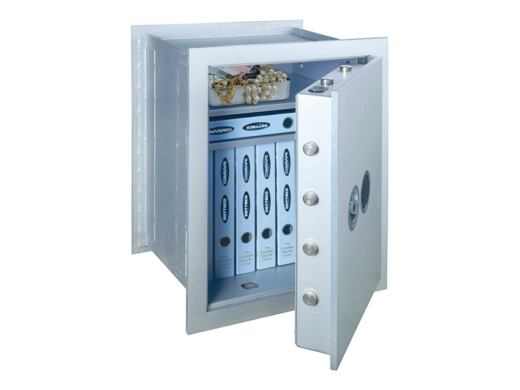 Hlavní výhody: Certifikovaný trezorový zámek s 2 klíči Bezpečnostní třída I (ČSN EN 1143-1) Jednoplášťový korpus 4-stranný uzamykací mechanizmus Otevírání dveří do 90° 2 poličky uvnitř Minimální tloušťka betonové obezdívky kolem trezoru je min. 10 cm Možnost doobjednání vnitřního sejfu Možnost doobjednání teleskopické police Možnost doobjednání teleskopické registratury Stříbrný stěnový trezor z modelové řady SE Premium má certifikovaný trezorový zámek dodávaný spolu s 2 klíči. Disponuje certifikátem bezpečnostní třídy I (ČSN EN1143-1) a jednoplášťovým korpusem. Dveře trezoru lze otevřít do úhlu 90° a uzavírá se pomocí 4-stranného uzamykacího mechanismu. Uvnitř trezoru se nacházejí 2 nastavitelné poličky. Upozorňujeme, že pro správné a bezpečné uložení trezoru do zdi je třeba, aby betonová obezdívka měla kolem trezoru tloušťku minimálně 10 cm.