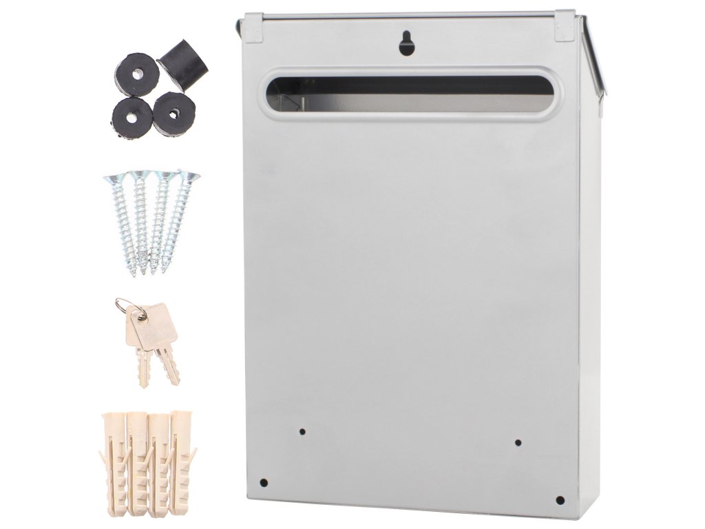 Hlavní výhody: Cylindrický zámek s 2 klíči Kvalitní povrchová úprava s pozinkováním Odolnost vůči korozi a povětrnostním vlivům Horní vhod pro vhazování zásilek Design vhodný i do interiéru doplněn jmenovkou Pozinkovaná poštovní schránka vhodná jak do exteriéru, tak i do interiéru a to díky Vhozové štvrbine na zadní straně. Horní vhodzový otvor pro poštu je chráněn vyklápěcím stříškou, která zabrání vnikání vody a jiných nečistot. Vaše pošta bude chráněna klasickým klíčovým zámkem a schránku si snadno označíte pomocí jmenovky, na kterou je samostatné místo. Schránka je zabalená v krabici a dodávána spolu s materiálem pro upevnění o zeď.Doplňkové parametry