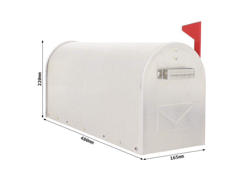 Hlavní výhody: Kvalitní hliník Odolnost před povětrnostními vlivy Červená plastová vlaječka pro označení přijetí pošty Možnost dokoupení stojanu Hliníková poštovní schránka v americkém designu potěší všechny milovníky amerického stylu bydlení. Kvalitní hliník dodává schránce odolnost proti povětrnostním vlivům a rzi. Červený praporek signalizuje plnou schránku a vy tak nemusíte stále kontrolovat, zda už pošta dorazila. Schránka nemá klasický klíčový zámek nebo pouze jednoduchý mechanismus, který zabraňuje otevření předních dvířek. Výhodou tohoto typu schránky je možnost uložit i delší zásilky nebo noviny spolu s klasickou poštou. K schránce je možné dokoupit i černý stojan.Doplňkové parametry