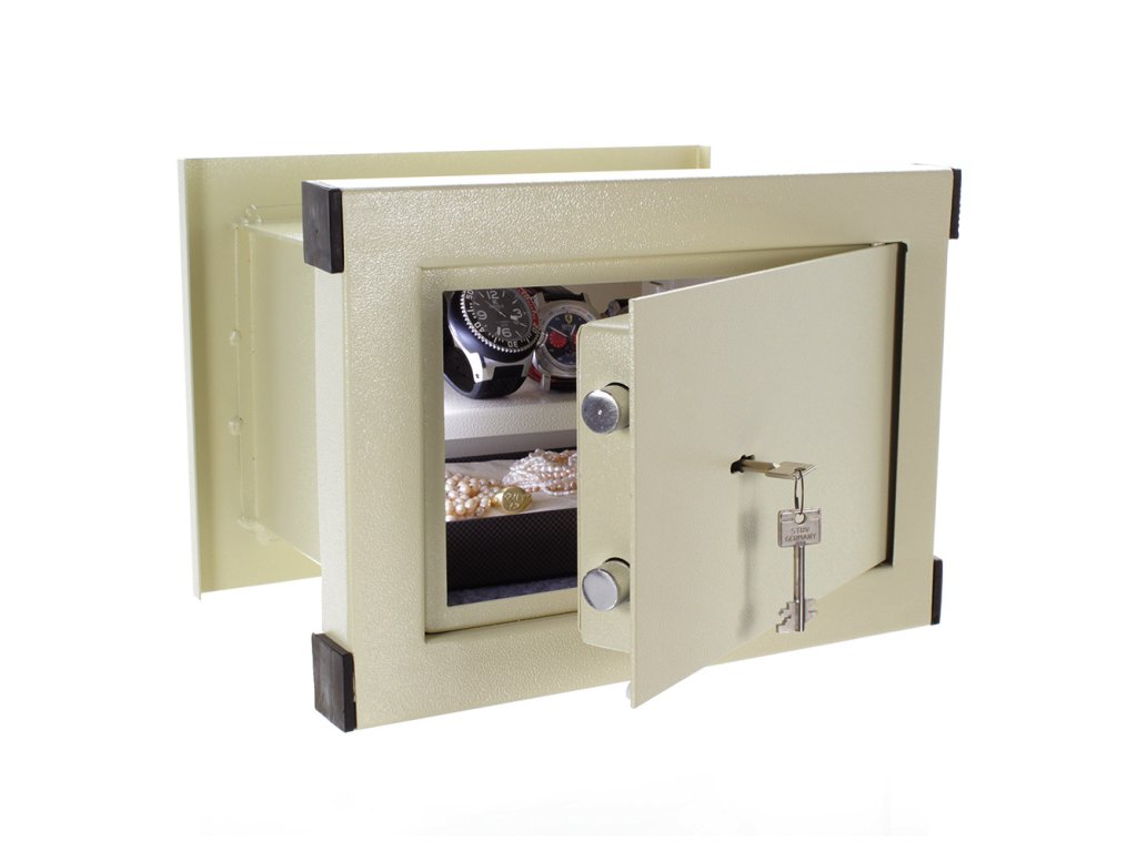 Hlavní výhody: Standardní trezorový zámek s 2 klíči Minimální síla stěny kolem sejfu min. 10 cm Jednoplášťový sejf s tloušťkou stěn 3 mm Tloušťka dveří 6 mm Polička uvnitř Stěnový sejf v elegantním provedení v přírodní béžové barvě poskytne potřebnou ochranu pro vaše věci. Disponuje standardní trezorový zámek s 2 klíči, který udrží vaše věci v bezpečí. Polička uvnitř sejfu pomůže při lepší organizací věci. Nezapomeňte, že kolem sejfu musí být stěna z betonu o síle min. 10 cm. Jednoduše si vyberte místo ve zdi, zabudujte sejf a vaše cennosti, doklady a důležité dokumenty budou v bezpečí.
