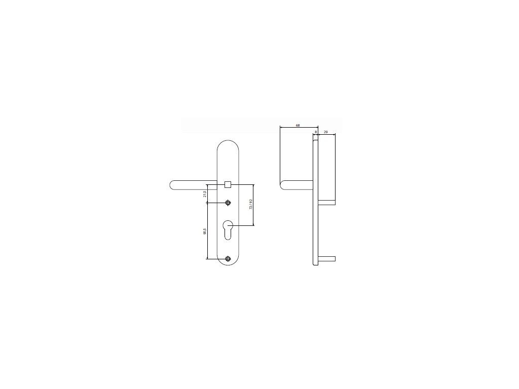 - Vnější štít pro zadlabací panikové kování PED500 a PED700 a UNIVERSAL 1970