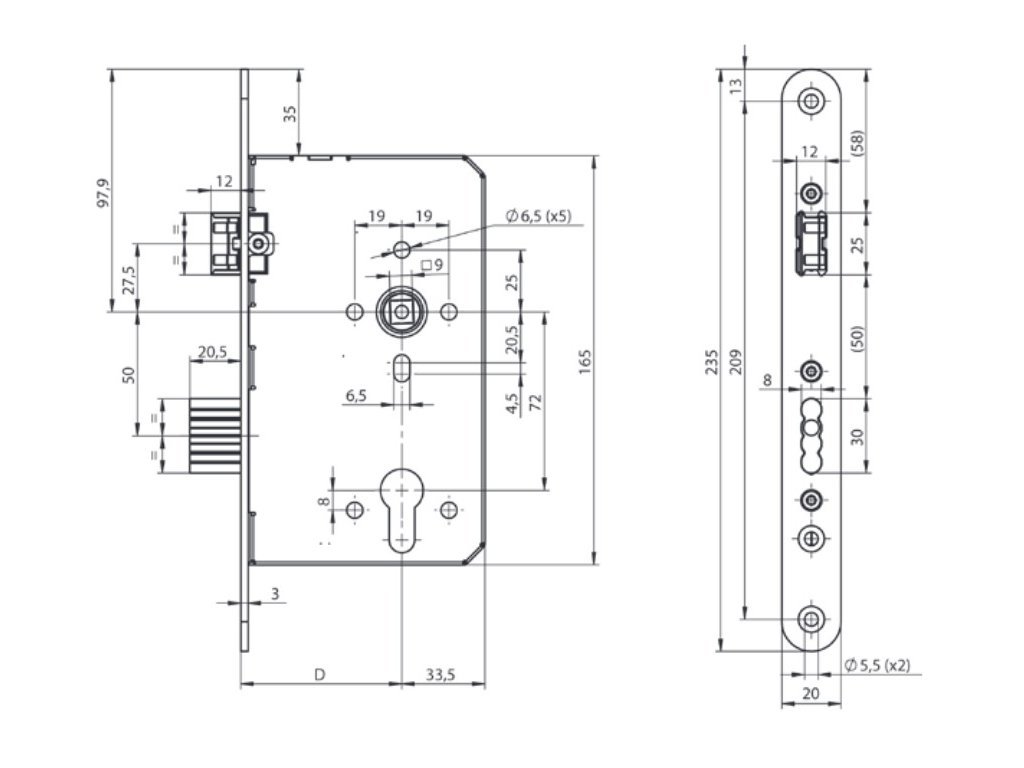 - backset 55mm, 60mm, 65mm