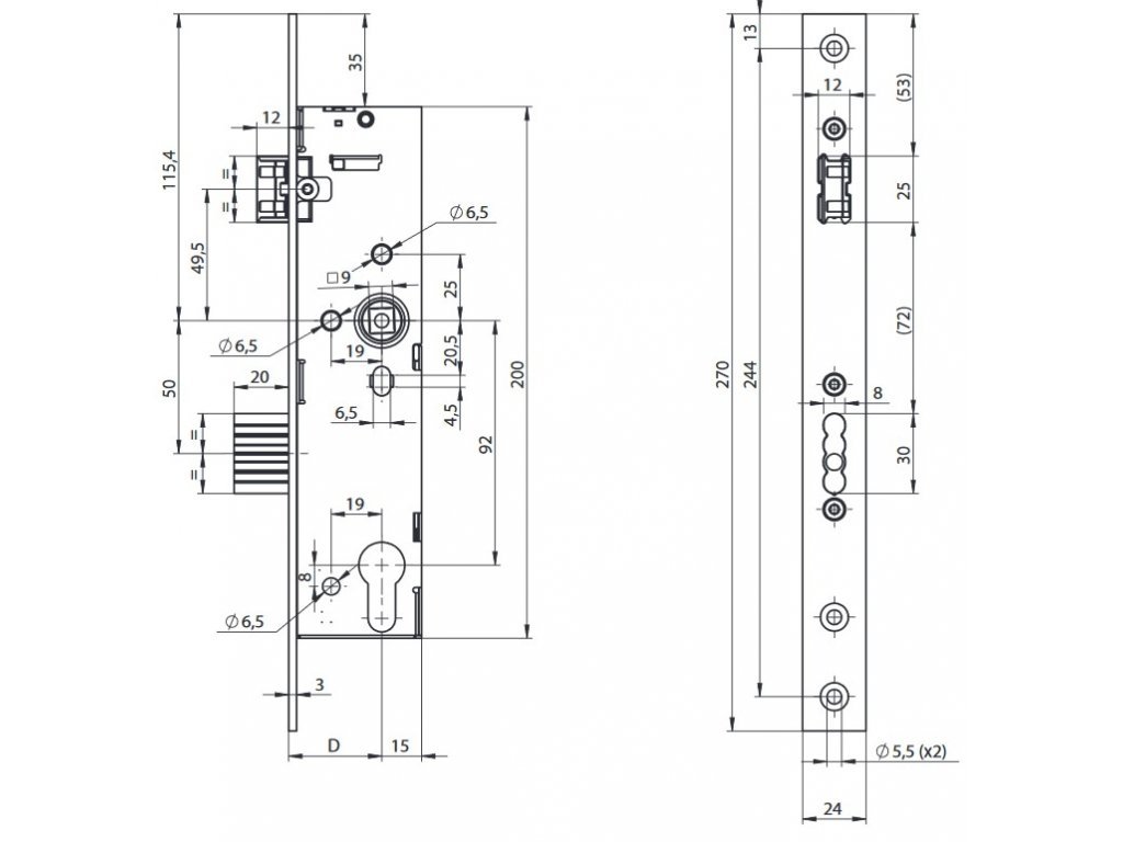 Zadlabací zámek mechanický vložkový - úzký s panikovou funkcí pro dvoukřídlé dveře - ASSA ABLOY - N1614- aktivní křídlo